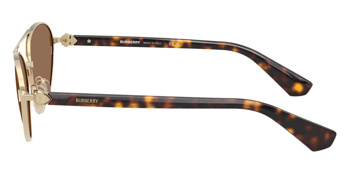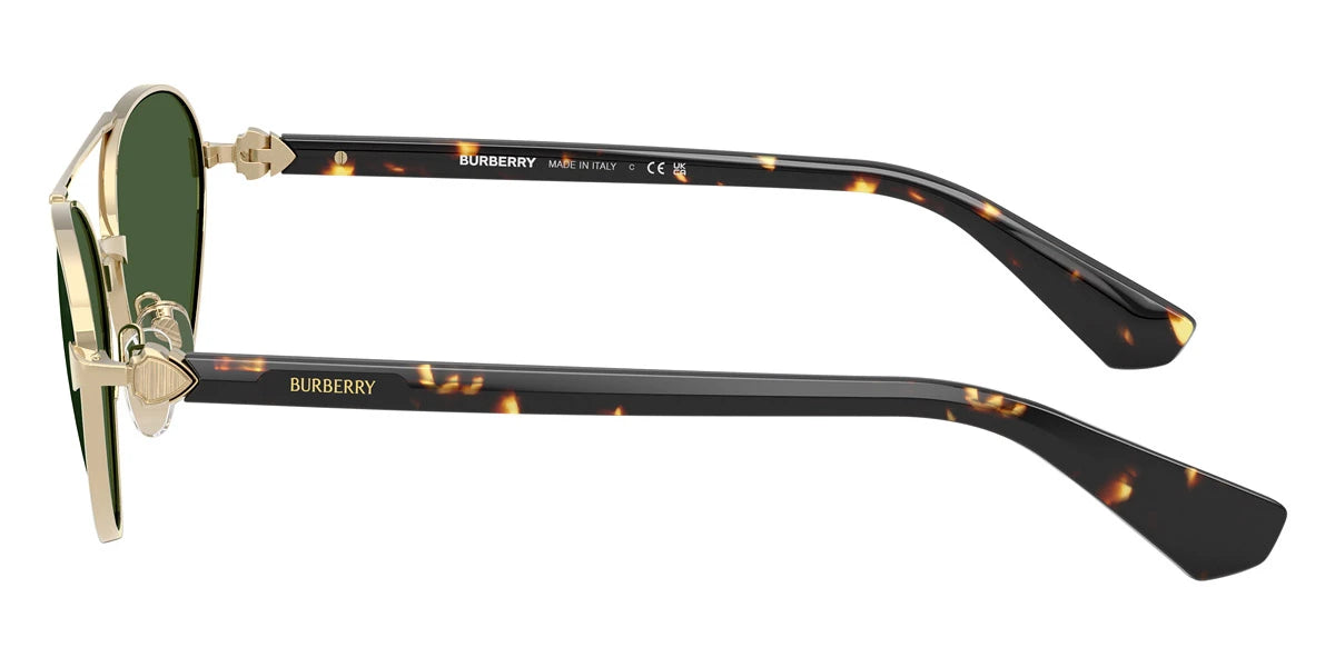Light Gold/Yellow Havana (110971) Sunglasses with Dark Green lenses (BE3165 110971 58) by BURBERRY™. Size: 58-17-140, Shape: Irregular, Material: Metal.