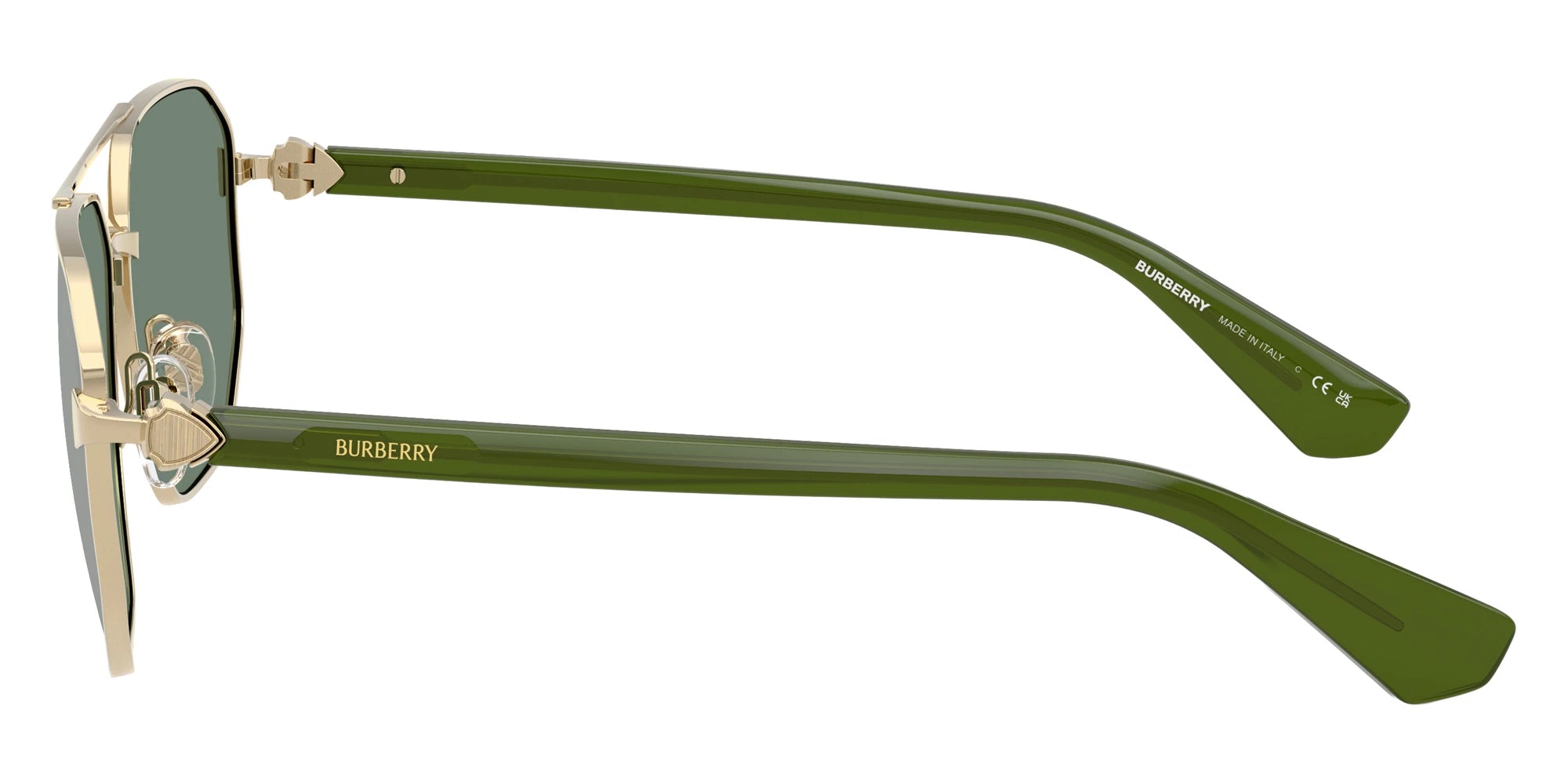Light Gold (110982) Sunglasses with Petrol Green Mirrored Silver lenses (BE3166 110982 60) by BURBERRY™. Size: 60-15-140, Shape: Aviator, Material: Metal.