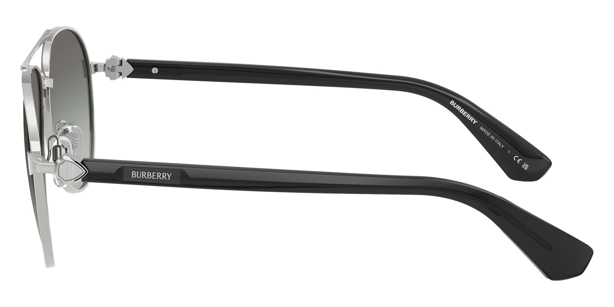 Silver (100511) Sunglasses with Gray Gradient lenses (BE3167 100511 59) by BURBERRY™. Size: 59-14-140, Shape: Aviator, Material: Metal.