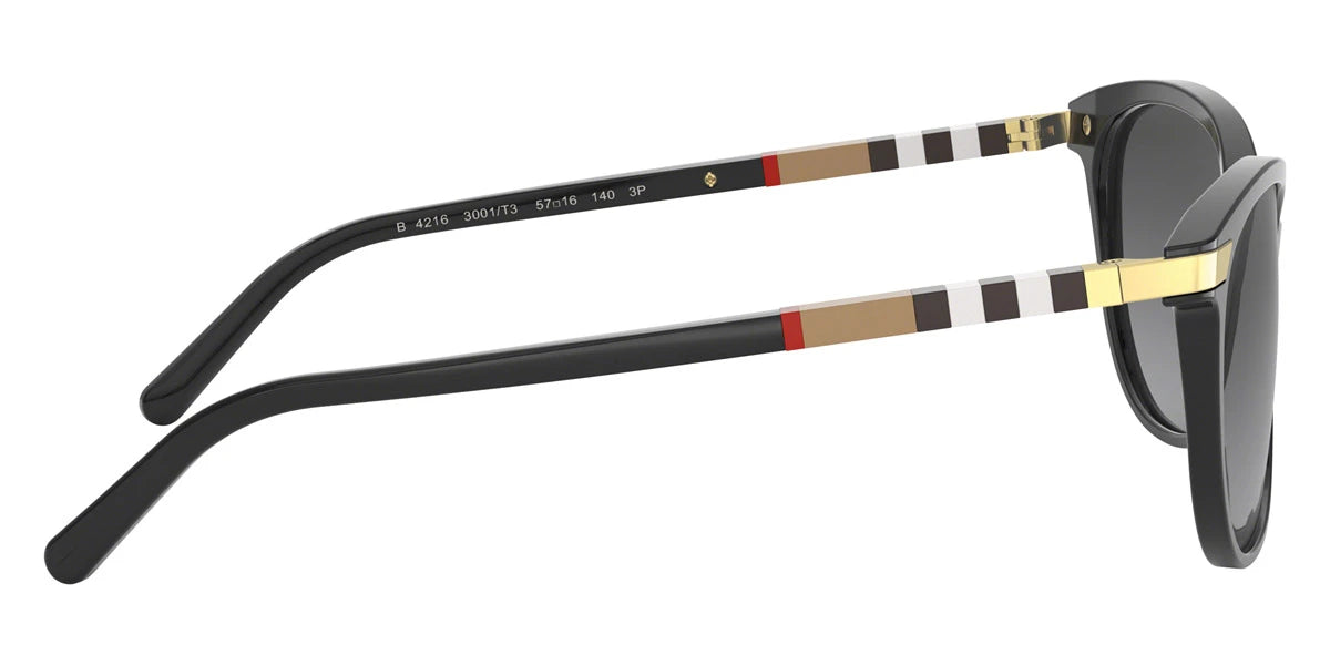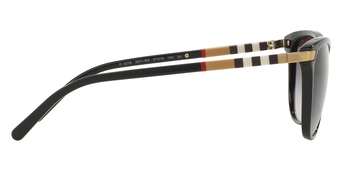 Black (30018G) Sunglasses with Gray Gradient lenses (BE4216 30018G 57) by BURBERRY™. Size: 57-16-140, Shape: Cat-Eye, Material: Plastic.