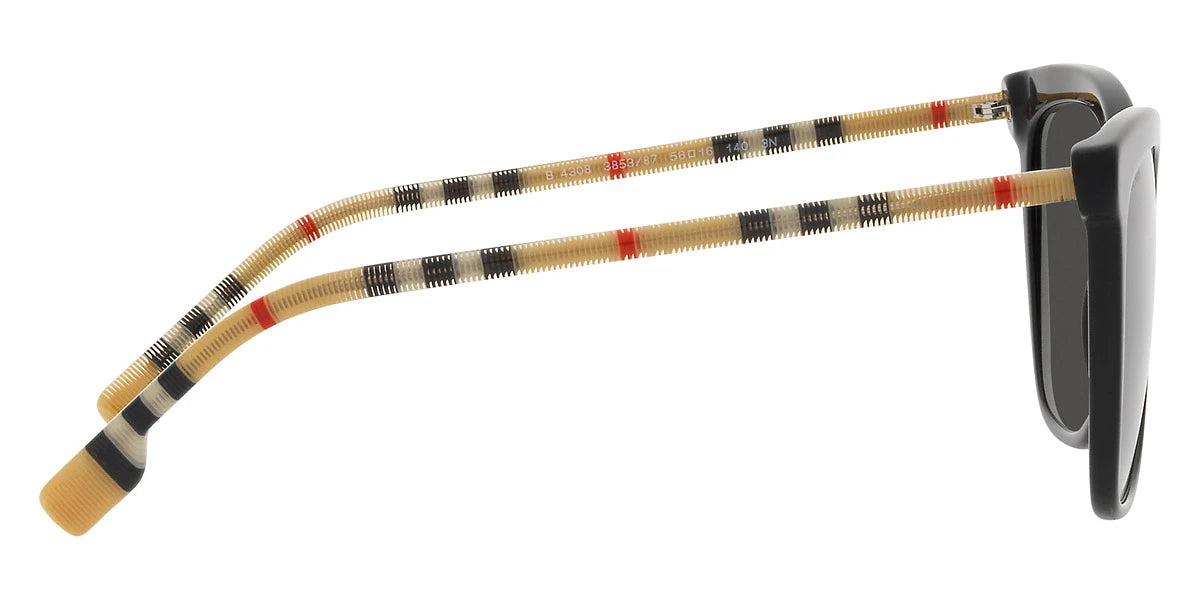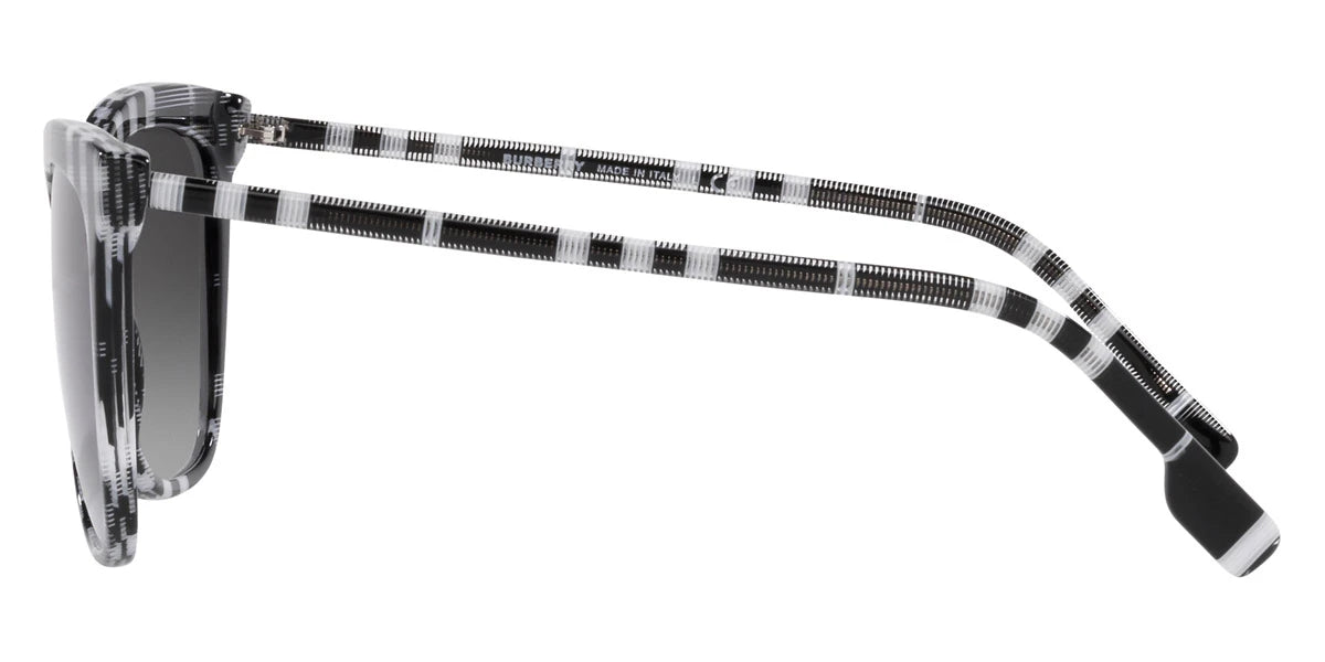 Check White/Black (40048G) Sunglasses with Gradient Gray lenses (BE4308 40048G 56) by BURBERRY™. Size: 56-16-140, Shape: Square, Material: Plastic.