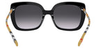 Black (38538G) Sunglasses with Gray Gradient lenses (BE4323F 38538G 56) by BURBERRY™. Size: 56-20-140, Shape: Square, Material: Plastic.