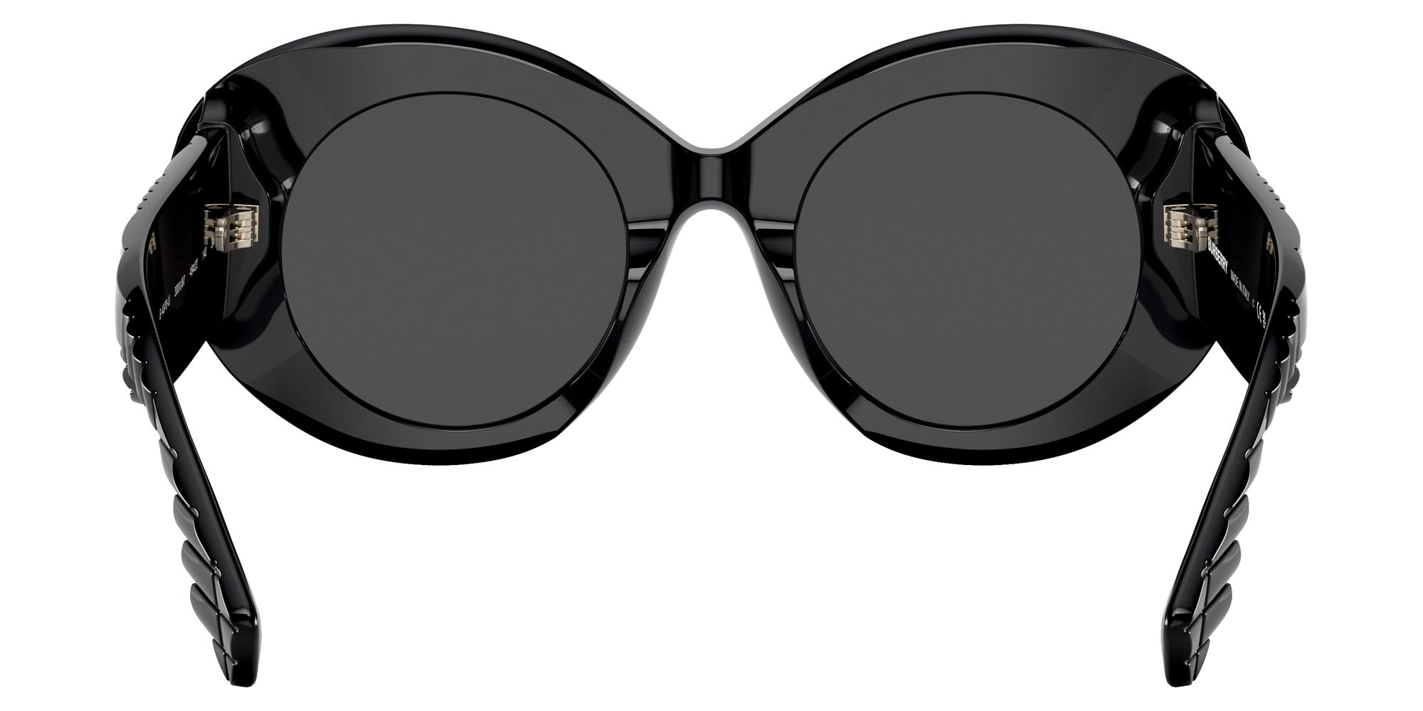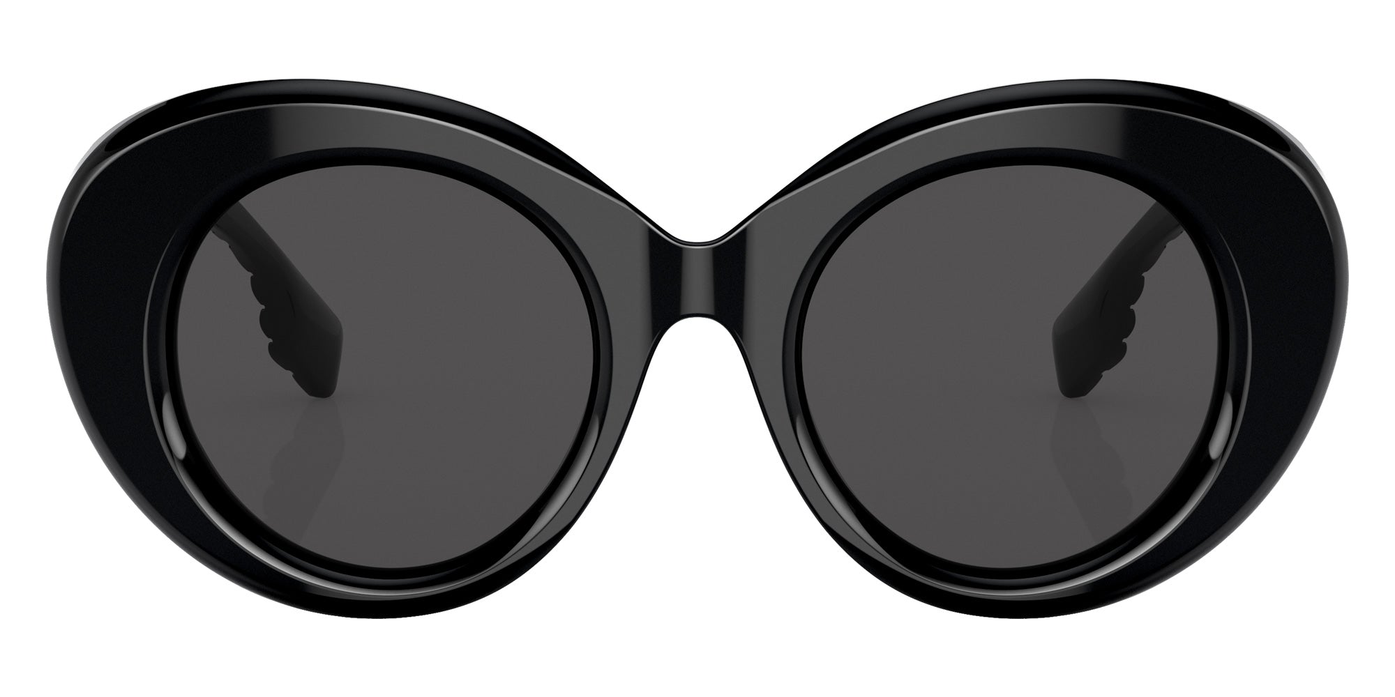 Black (300187) Sunglasses (BE4370U Margot 300187 49) by Burberry. Size: 49-22-140, Shape: Round, Material: Acetate and Injected.