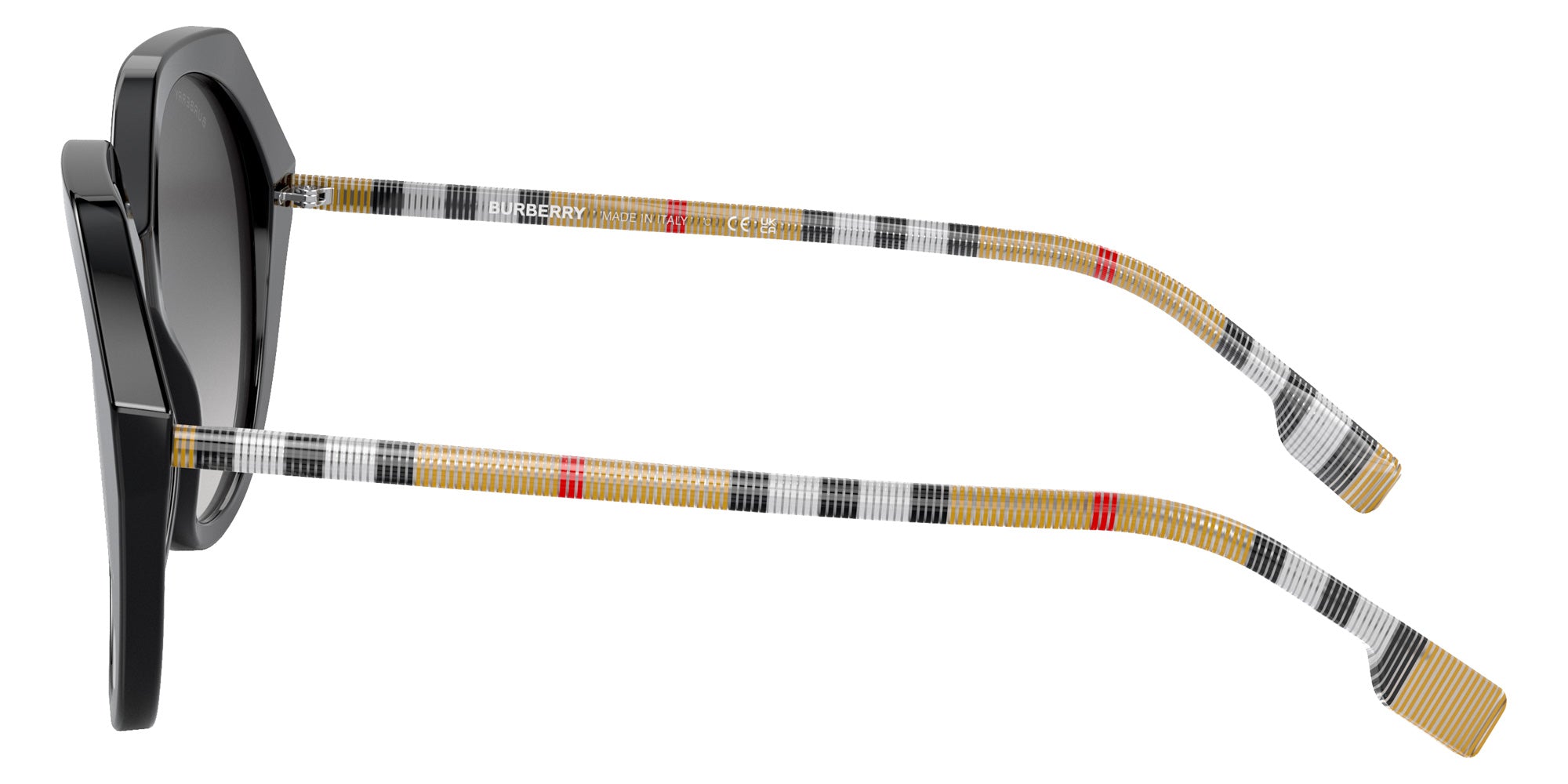 Black (38538G) Sunglasses (BE4375 Vanessa 38538G 55) by Burberry. Size: 55-18-140, Shape: Irregular, Material: Acetate.