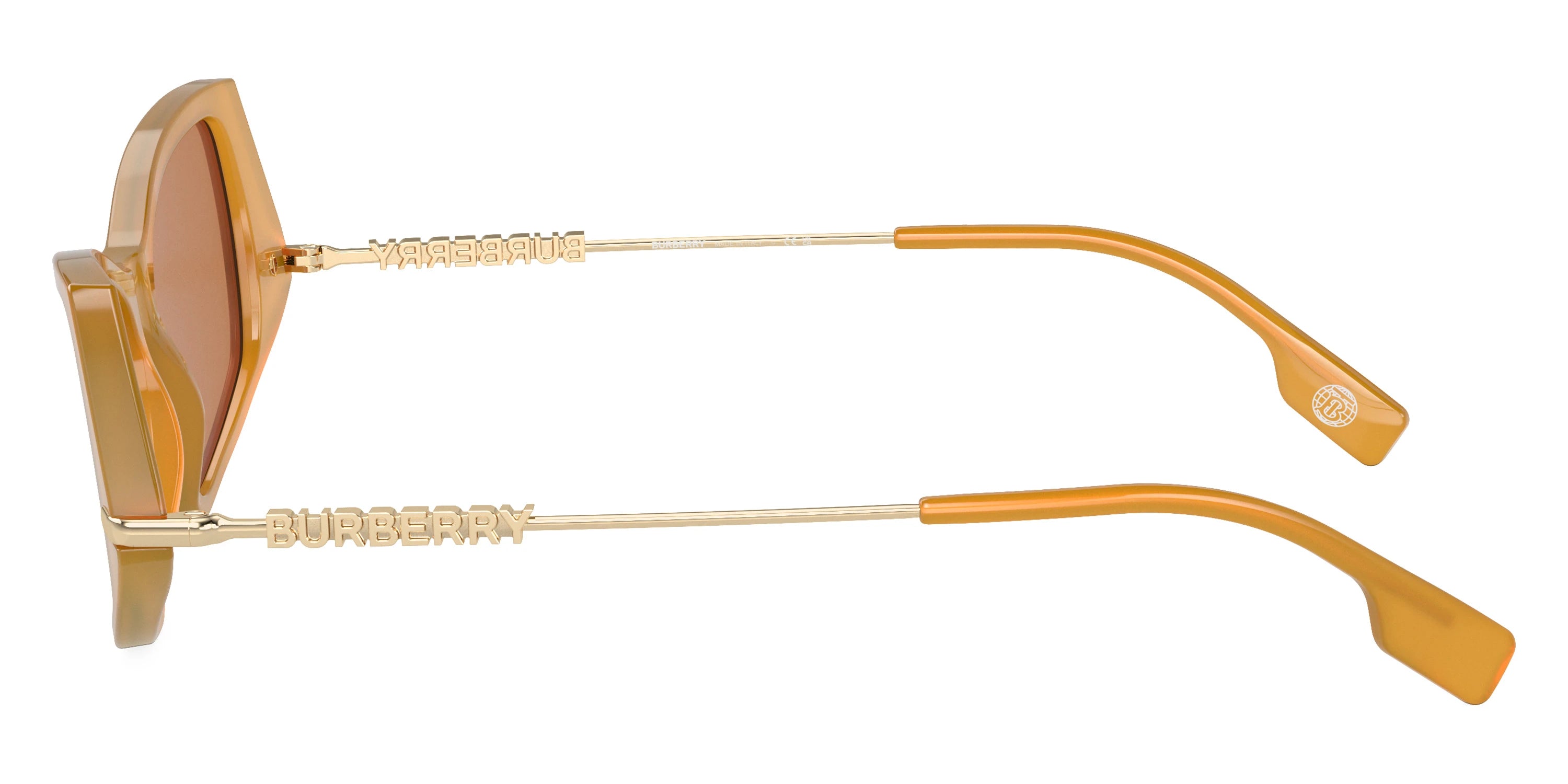 Yellow/Light Gold (409473) Sunglasses with Dark Brown lenses (BE4408 409473 52) by BURBERRY™. Size: 52-16-140, Shape: Irregular, Material: Acetate and Metal.