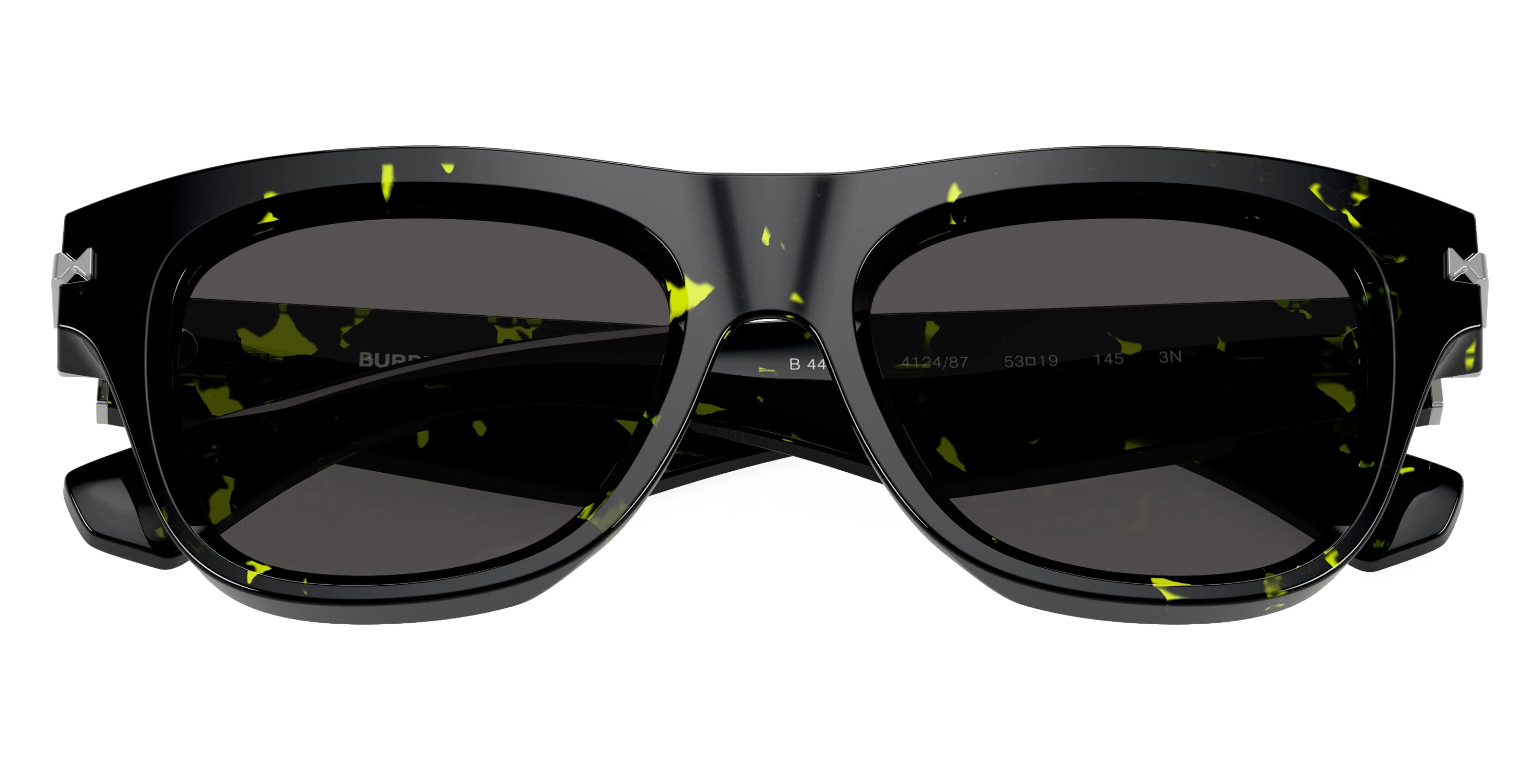 Black (300187) Sunglasses with Dark Gray lenses (BE4438U 300187 53) by BURBERRY™. Size: 53-19-145, Shape: Square, Material: Acetate.