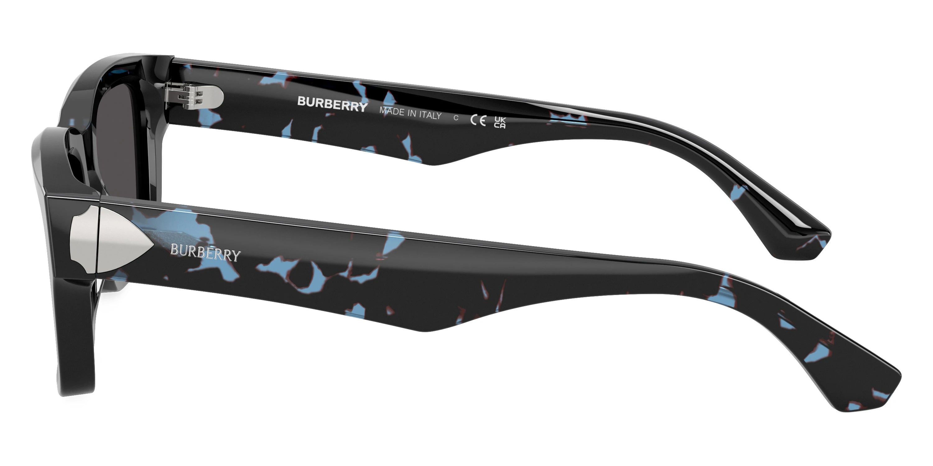 Black (300187) Sunglasses with Dark Gray lenses (BE4443F 300187 55) by BURBERRY™. Size: 55-20-145, Shape: Rectangle, Material: Acetate.
