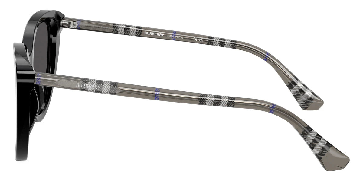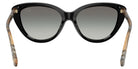 Black (416111) Sunglasses with Gray Gradient lenses (BE4457F 416111 55) by BURBERRY™. Size: 55-17-140, Shape: Cat-Eye, Material: Acetate.
