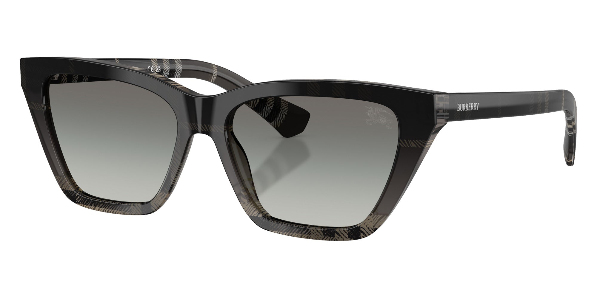 Gray Check (420011) Sunglasses (BE4468 420011 54) by Burberry. Size: 54-15-140, Shape: Cat-Eye, Material: Acetate.