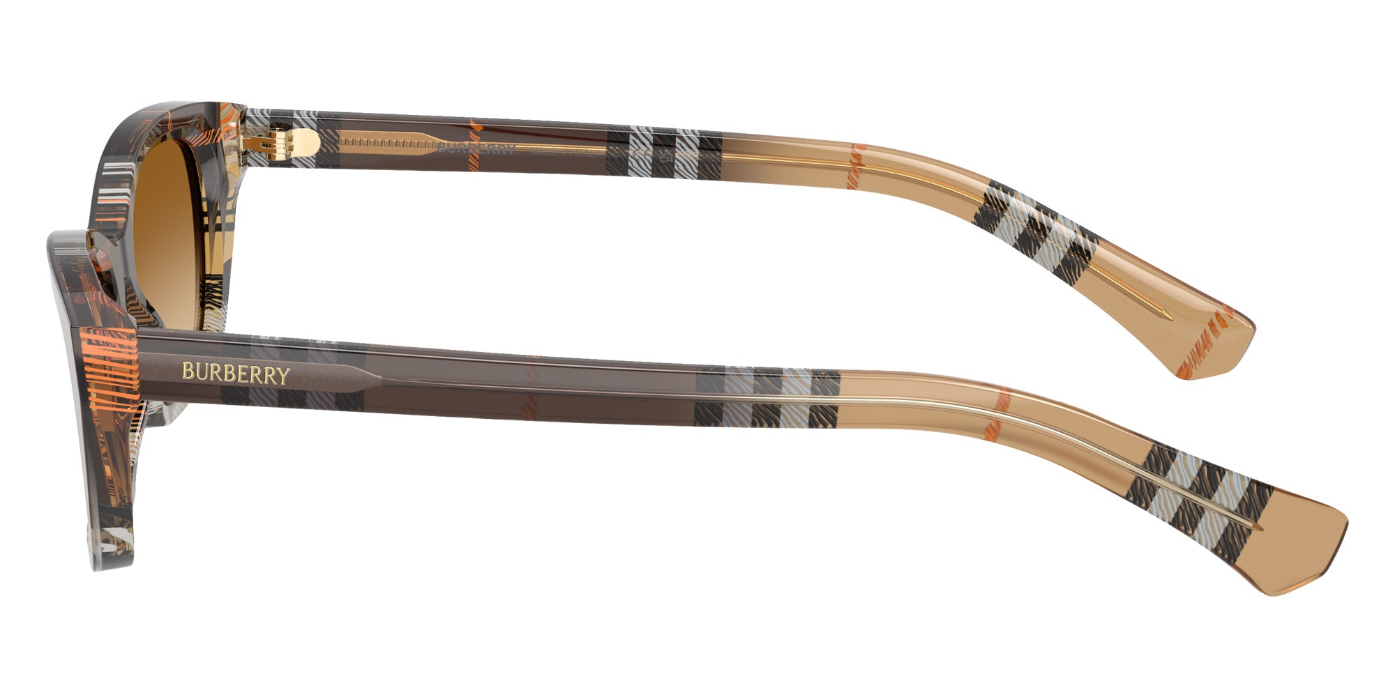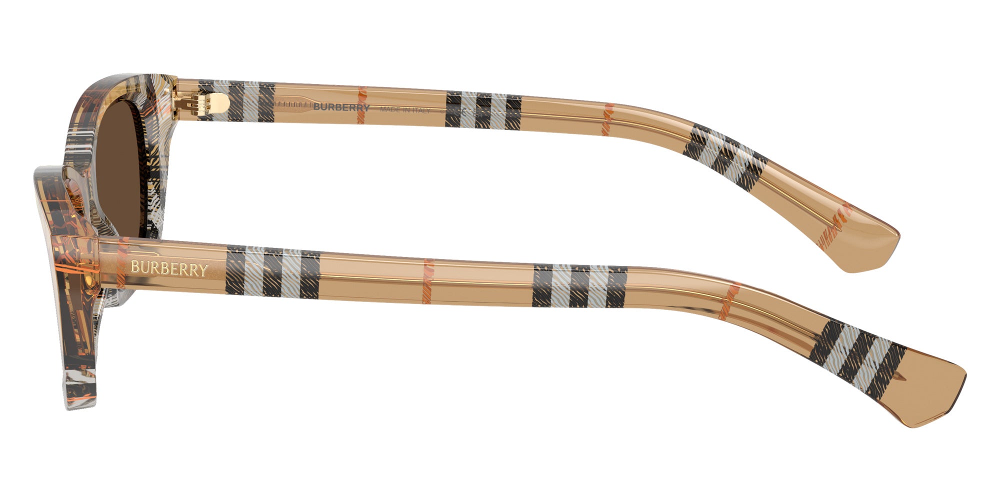 Check Sand (416373) Sunglasses with Dark Brown lenses (BE4488 416373 52) by BURBERRY. Size: 52-17-140, Shape: Rectangle, Material: Acetate.