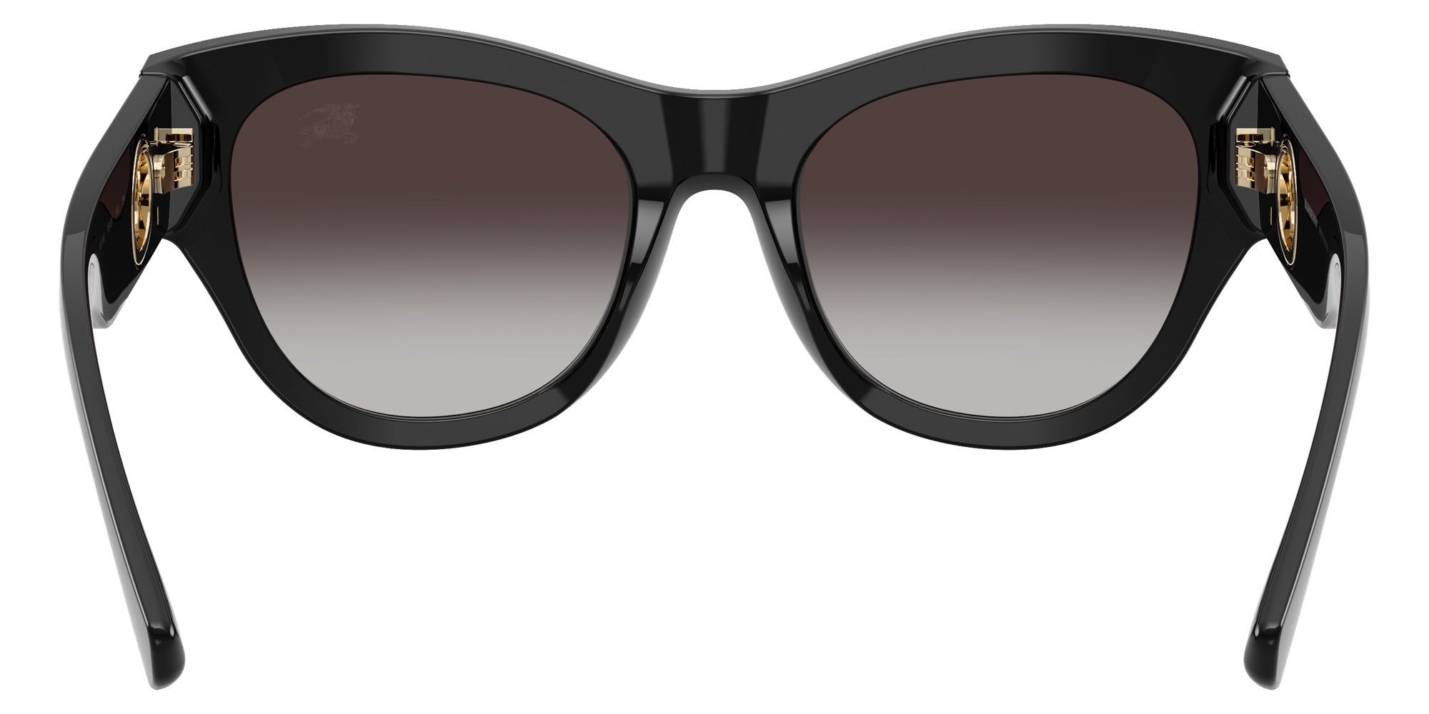 Black (30018G) Sunglasses with Gray Gradient lenses (BE4491 30018G 52) by BURBERRY. Size: 52-20-140, Shape: Round, Material: Acetate and Metal.