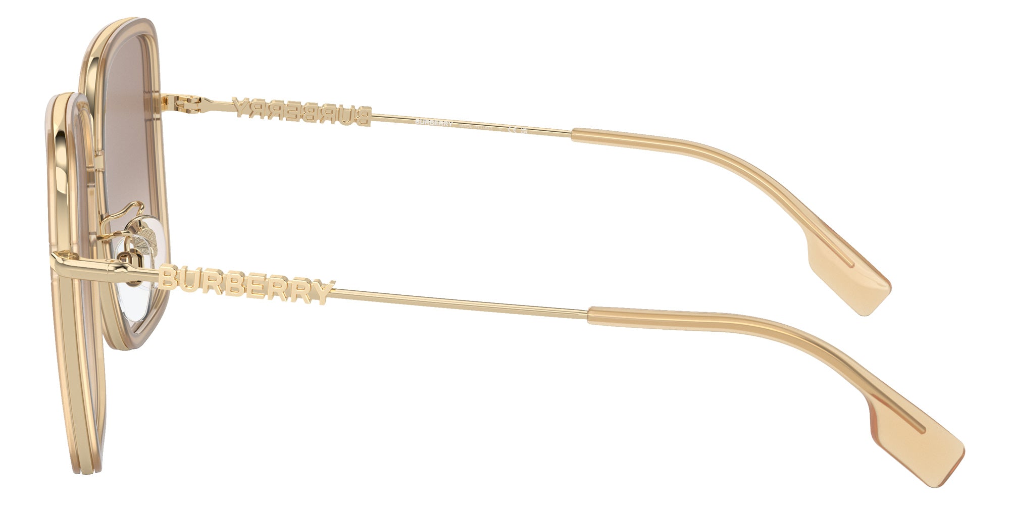 Ivory/Light Gold (1109G9) Sunglasses with Light Brown Gradient Gray lenses (Dionne BE3145D 1109G9 58) by BURBERRY™. Size: 58-16-140, Shape: Square, Material: Steel and Metal.