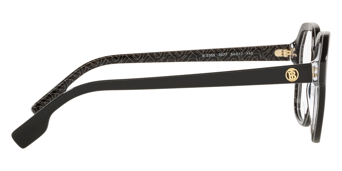 Black/Print Tb/Crystal (3977) Eyeglasses (BE2358 3977 54) by BURBERRY™. Size: 54-17-140, Shape: Square, Material: Plastic.
