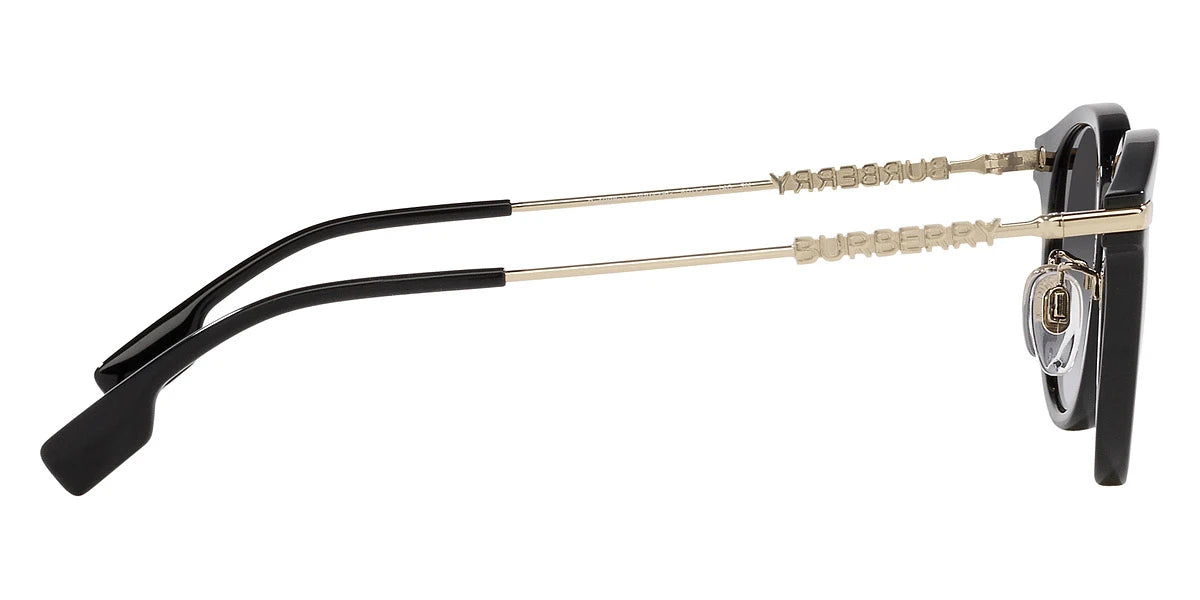 Black and Light Gold (30018G) Sunglasses with Gray Gradient lenses (Kelsey BE4398D 30018G 50) by BURBERRY™. Size: 50-21-140, Shape: Wayfarer, Material: Injected and Metal.