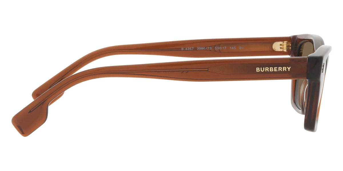 Brown (398673) Sunglasses with Dark Brown lenses (BE4357 398673 53) by BURBERRY™. Size: 53-17-145, Shape: Rectangle, Material: Plastic.