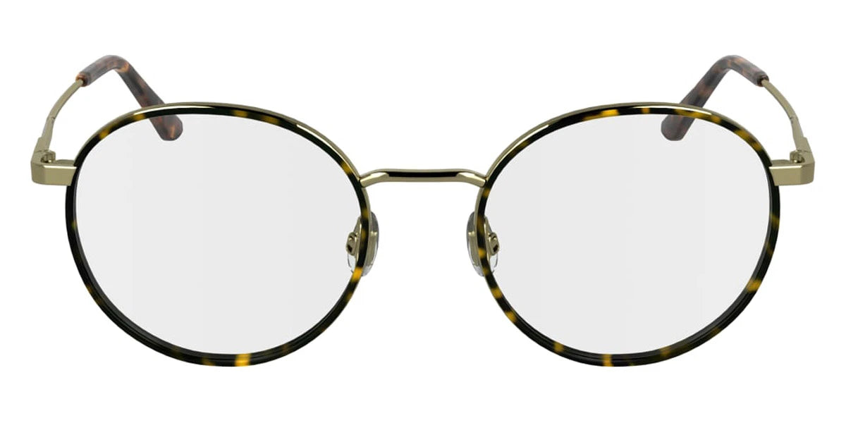 Dark Havana (235) Eyeglasses (CK24114 235 49) by Calvin Klein™. Size: 49-19-145, Shape: Round, Material: Metal.