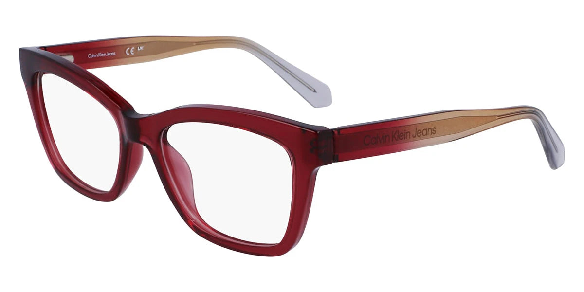 Burgundy (601) Eyeglasses (CKJ23650 601 53) by Calvin Klein™. Size: 53-17-140, Shape: Cat-Eye, Material: Bio Inj-G820.