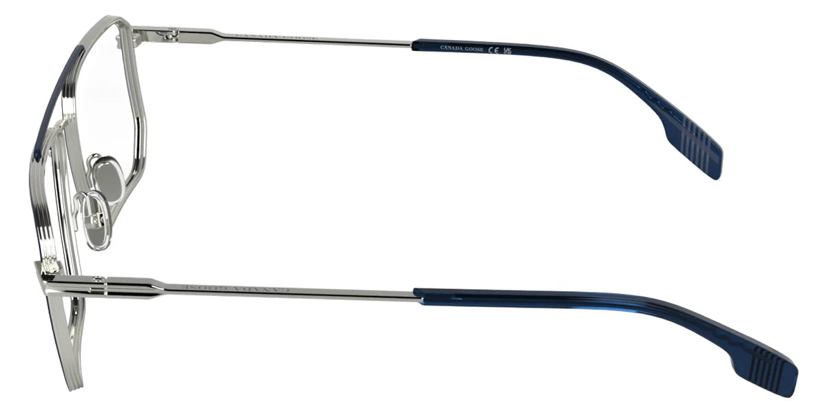 Silver/Blue (040) Eyeglasses (GC25512E 040 57) by Canada Goose™. Size: 57-18-145, Shape: Rectangle, Material: Titanium.
