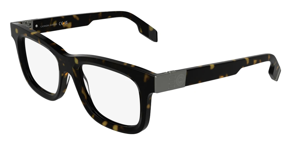 Dark Havana (230) Eyeglasses (GC25628E 230 53) by Canada Goose™. Size: 53-18-145, Shape: Rectangle, Material: Acetate.