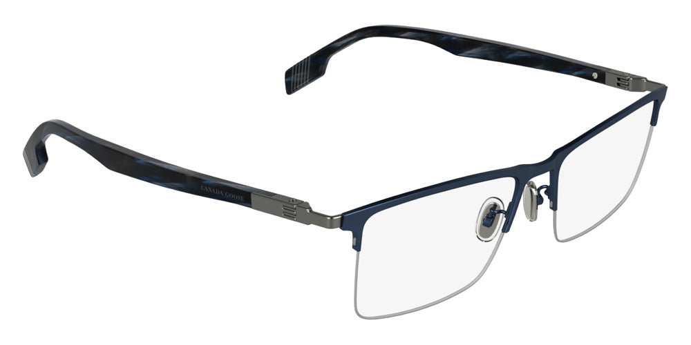 Matte Dark Gun/Matte Blue (039) Eyeglasses (GC26505E 039 55) by Canada Goose. Size: 55-17-150, Shape: Rectangle, Material: Titanium.