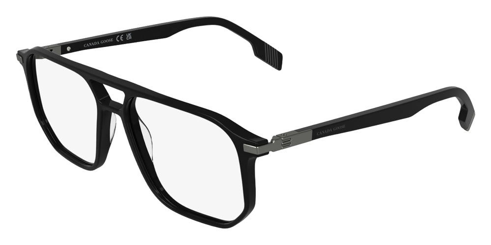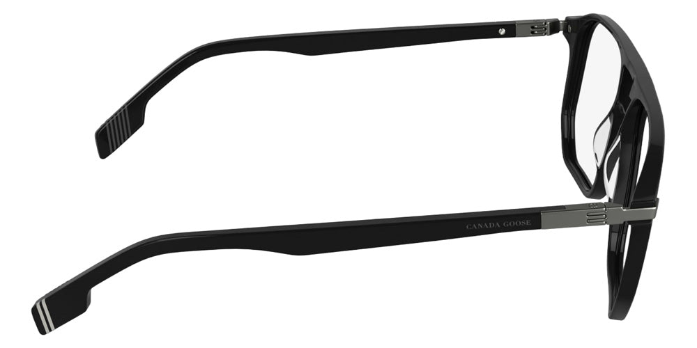 Black (001) Eyeglasses (GC26605E 001 57) by Canada Goose. Size: 57-16-150, Shape: Aviator, Material: Rec Acetate-Renew.