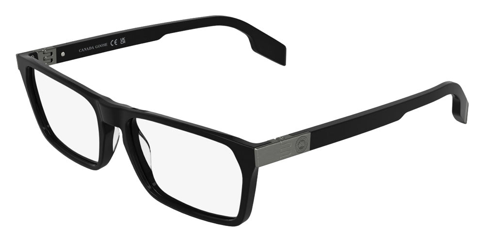 Black (001) Eyeglasses (GC26606E 001 58) by Canada Goose. Size: 58-17-150, Shape: Rectangle, Material: Rec Acetate-Renew.