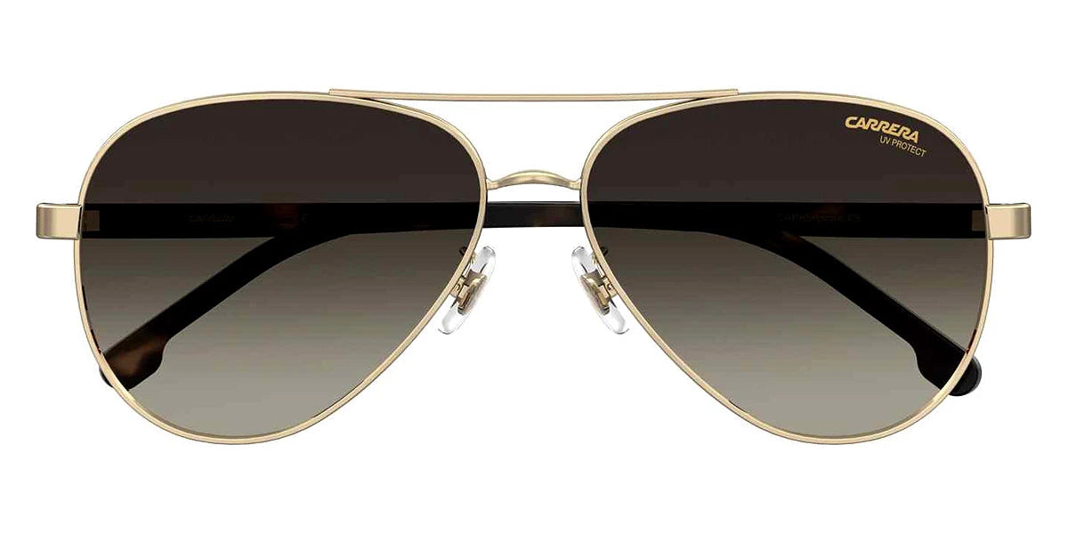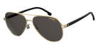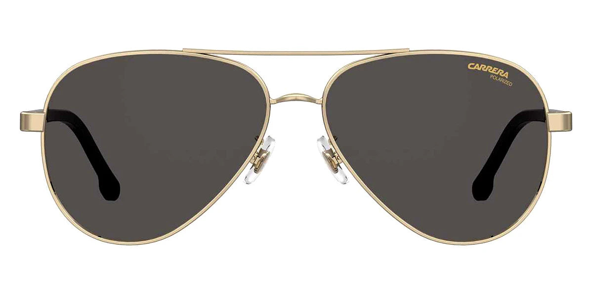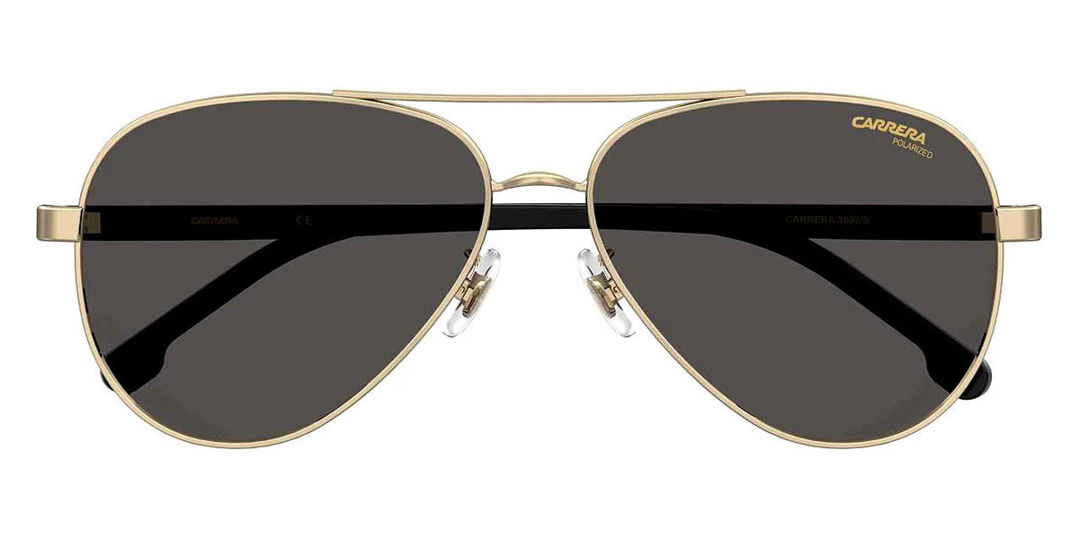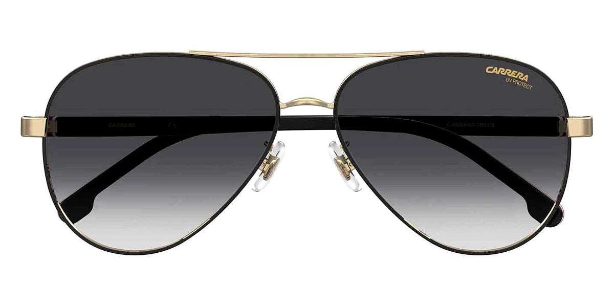 Black Gold (02M29O) Sunglasses with Gray Shaded lenses (3003/S 02M29O 58) by Carrera™. Size: 58-14-140, Shape: Aviator, Material: Acetate and Stainless Steel.