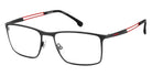 Matte Black Red (0BLX) Eyeglasses (8898 0BLX 55) by Carrera™. Size: 55-18-140, Shape: Rectangle, Material: Stainless Steel.