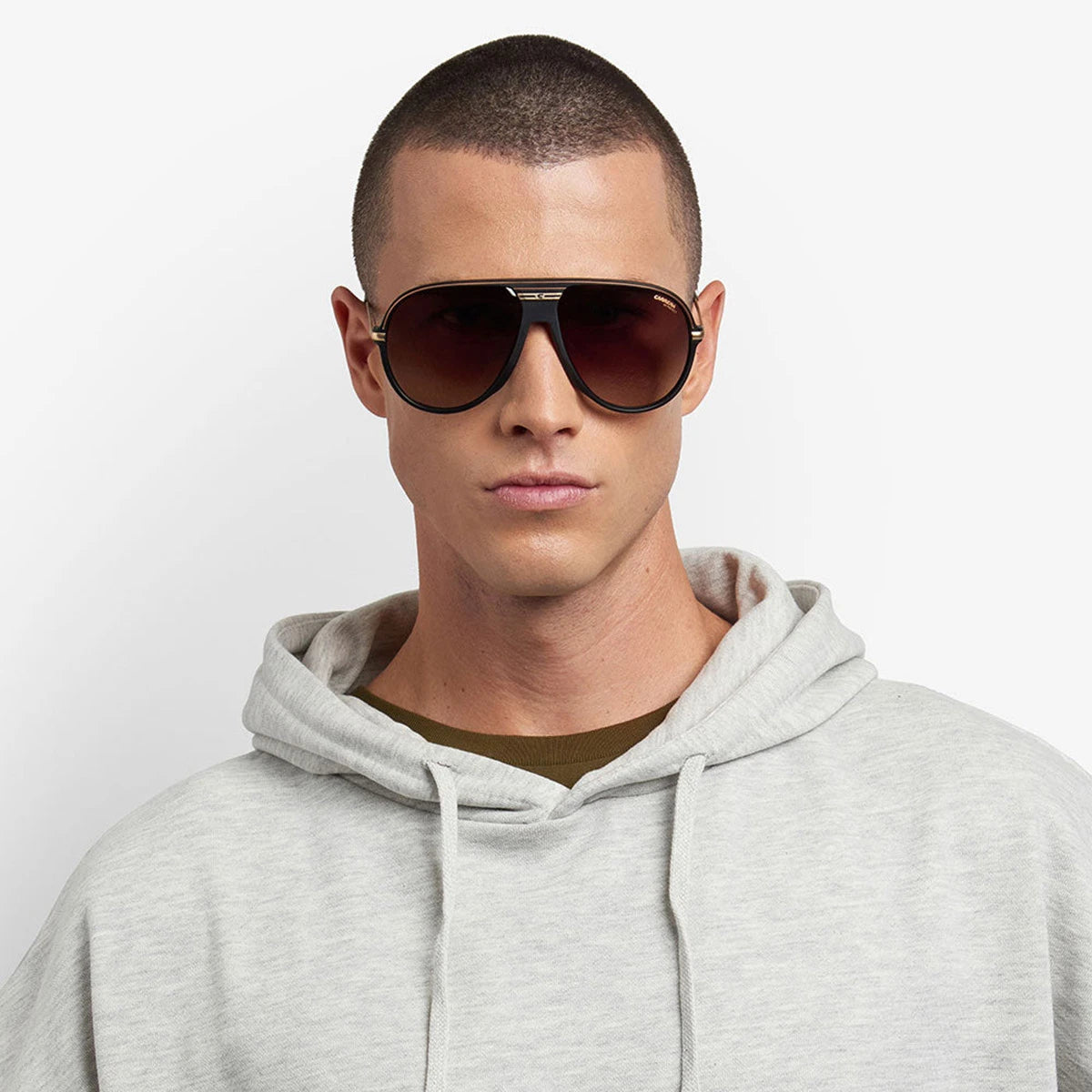 C SPORT 06/S Sunglasses by Carrera™. The aviator shape design feature a full rim polyamide inj-gril. and metal frame. This model is available in four different color combinations and sizes. The Italian brand Carrera is famous all over the world for its quality sun-protection optics, as well as accessories for skiing and racing. Carrera was created in 1956 and at that time the brand was developing sport safety glasses and safety helmets. In the 1980s, the company began producing frames for prescription glasses, which was a huge success as athletes could buy Carrera glasses that they trust in terms of quality, safety and functionality. Today the brand is synonymous with technology, reliability and design.