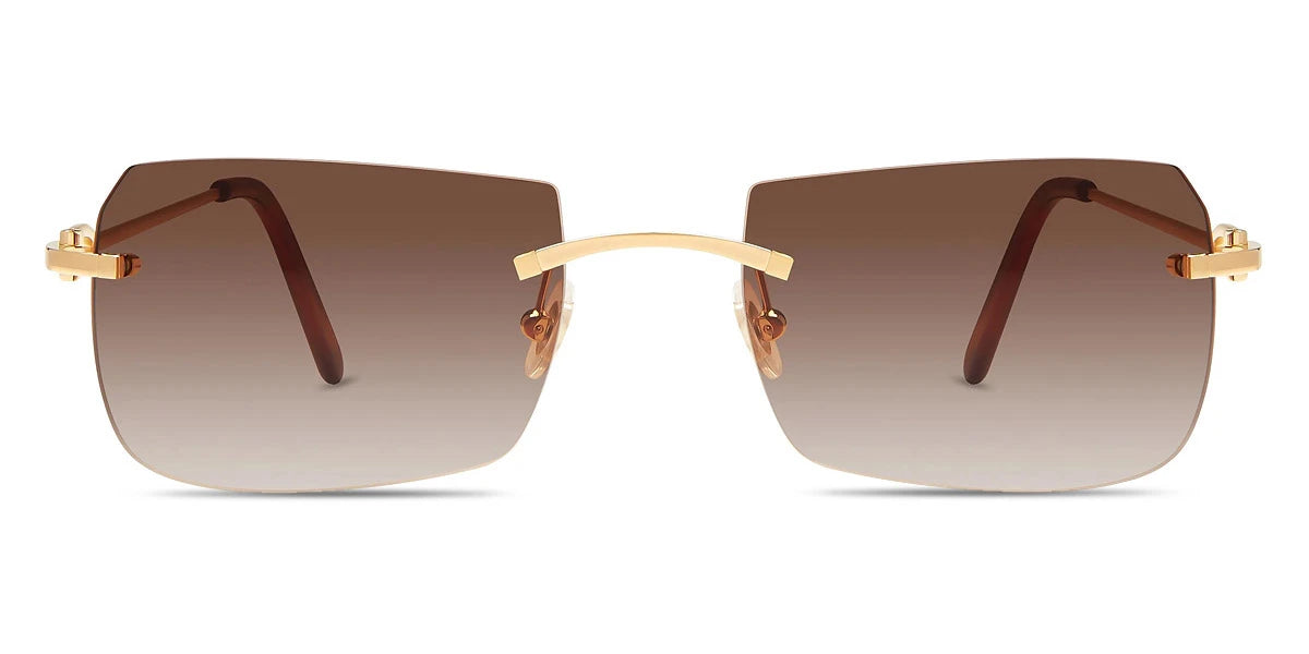 Gold (001) Sunglasses with Brown Multi Treatment lenses (CT0006RS 001 56) by Cartier™. Size: 56-19-140, Shape: Rectangle, Material: Metal.