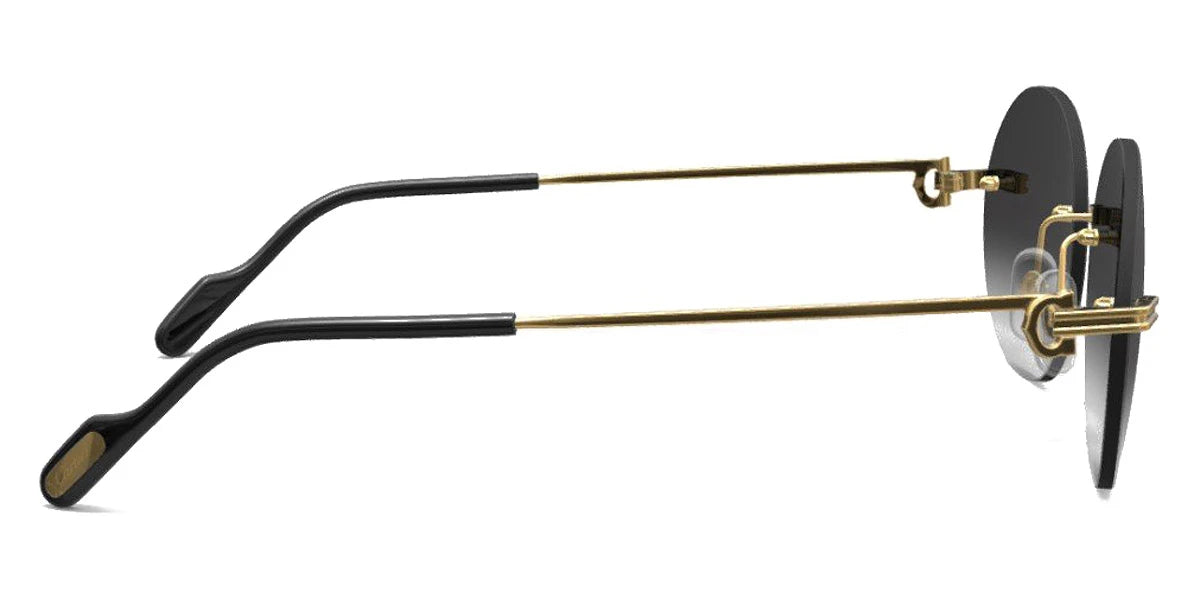 Gold (037) Sunglasses with Gradient Gray lenses (CT0011CS 037 58) by Cartier™. Size: 58-16-145, Shape: Round, Material: Metal.