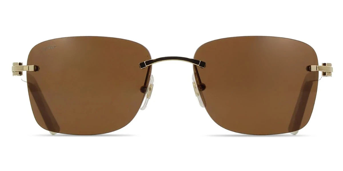 CT0034RS Sunglasses by Cartier™. The rectangle shape design feature a rimless metal frame. This model is available in one color combination. The CT0034RS model showcases a refined and feminine silhouette, combining a modern aesthetic with classic elements. Its gracefully curved frame, delicately sculpted from high-quality acetate, harmoniously embraces the wearer's face, accentuating the natural contours and enhancing facial features. The lenses, expertly crafted from premium materials, provide exceptional optical clarity and protection, ensuring a comfortable and immersive visual experience. Additionally, these sunglasses offer 100% UV protection, without compromising style.
