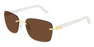 Gold/White (001) Sunglasses with Brown AR lenses (CT0034RS 001 56) by Cartier™. Size: 56-17-140, Shape: Rectangle, Material: Metal.