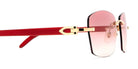 CT0039RS Sunglasses by Cartier™. The rectangle shape design feature a rimless metal and wood frame. This model is available in one color combination. Crafted with meticulous attention to detail, these sunglasses exude timeless elegance. The sleek, minimalist design seamlessly combines modern aesthetics with Cartier's rich heritage, making them a symbol of refined taste. The frame's exquisite materials and flawless finish ensure durability and comfort, while the iconic Cartier insignia discreetly graces the temple.