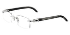 Silver/Black (002) Eyeglasses with Transparent lenses (CT0049O 002 53) by Cartier™. Size: 53-18-140, Shape: Rectangle, Material: Horn and Metal.