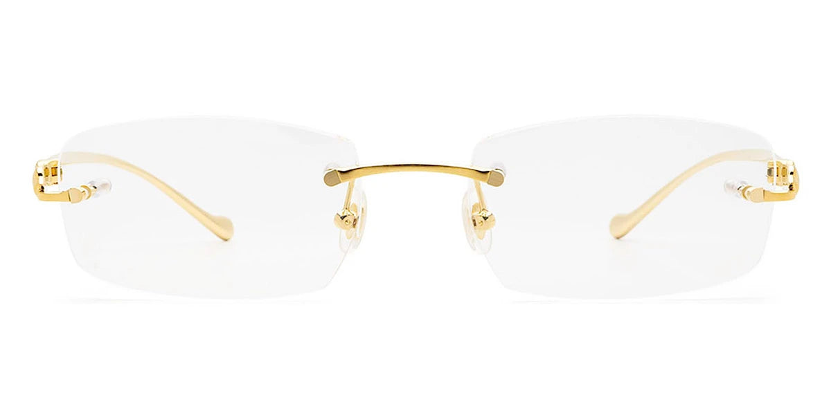 CT0061O Eyeglasses by Cartier™. The rectangle shape design feature a rimless metal frame. This model is available in two different color combinations and sizes. The CT0061O is an exquisite unisex optical frame designed by the renowned luxury brand Cartier. It is meticulously crafted from high-quality metal, showcasing the brand's commitment to both style and durability. The frame features a sleek and contemporary design, blending sophistication with a touch of timeless elegance. The metal construction ensures a lightweight and comfortable fit, making it suitable for extended wear. The frame's unisex appeal allows it to complement a wide range of face shapes and personal styles.
