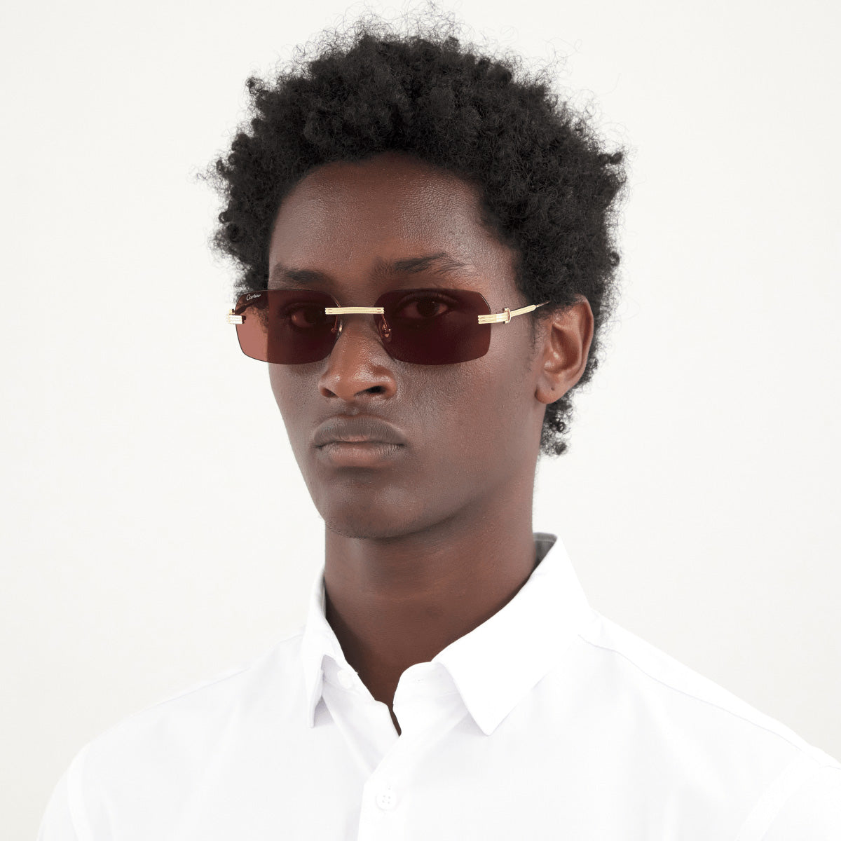 The rectangle shape desing feature a rimless metal recycled acetate frame. This model is available in three different color combinations and sizes. Cartier, a renowned luxury brand with a rich history spanning over a century, is synonymous with elegance, craftsmanship, and timeless style. While Cartier is most celebrated for its exquisite jewelry and watches, the brand's eyewear collection stands as a testament to its commitment to excellence and innovation. Its eyewear captures the essence of Cartier's aesthetic codes, combining traditional craftsmanship with modern designs to create eyewear pieces that are both stylish and functional. Each pair of sunglasses is meticulously crafted using the finest materials and techniques, resulting in a high-quality product that is built to last. One of the defining features of Cartier eyewear is its iconic and recognizable designs. The brand often incorporates signature elements like the panther motif, the Double C logo, and the Cartier screws, which add a touch of sophistication and luxury to the frames. These distinctive details are a testament to the brand's dedication to creating eyewear that is not only fashionable but also instantly recognizable as a Cartier creation.