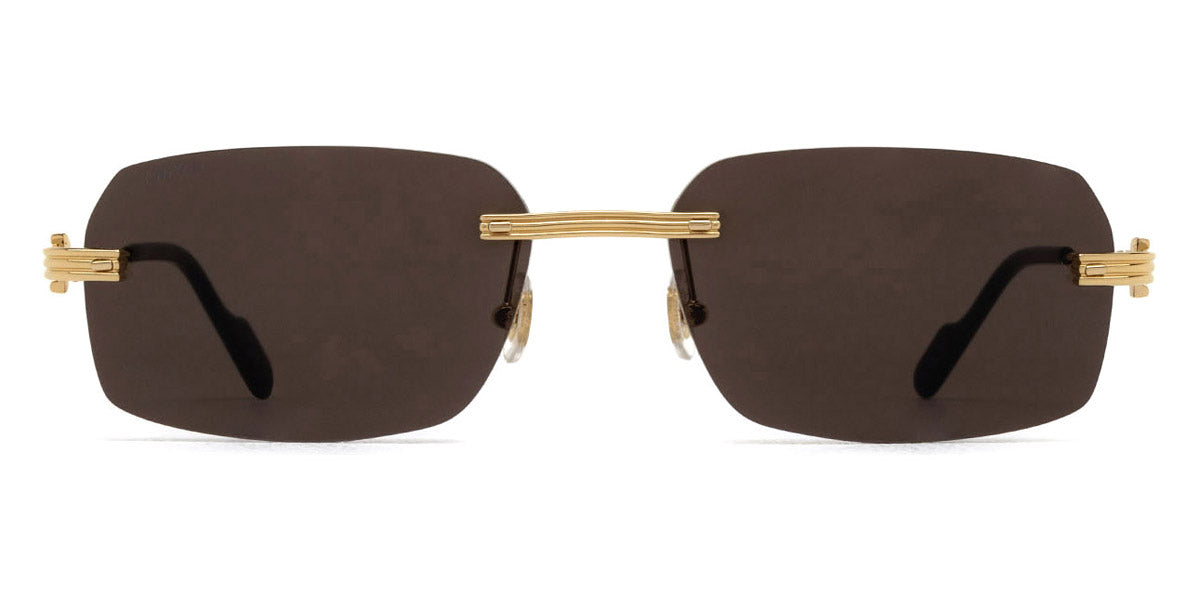 Gold (004) Sunglasses (CT0271S 004 58) by Cartier. Size: 58-17-145, Shape: Rectangle, Material: Metal and Acetate.