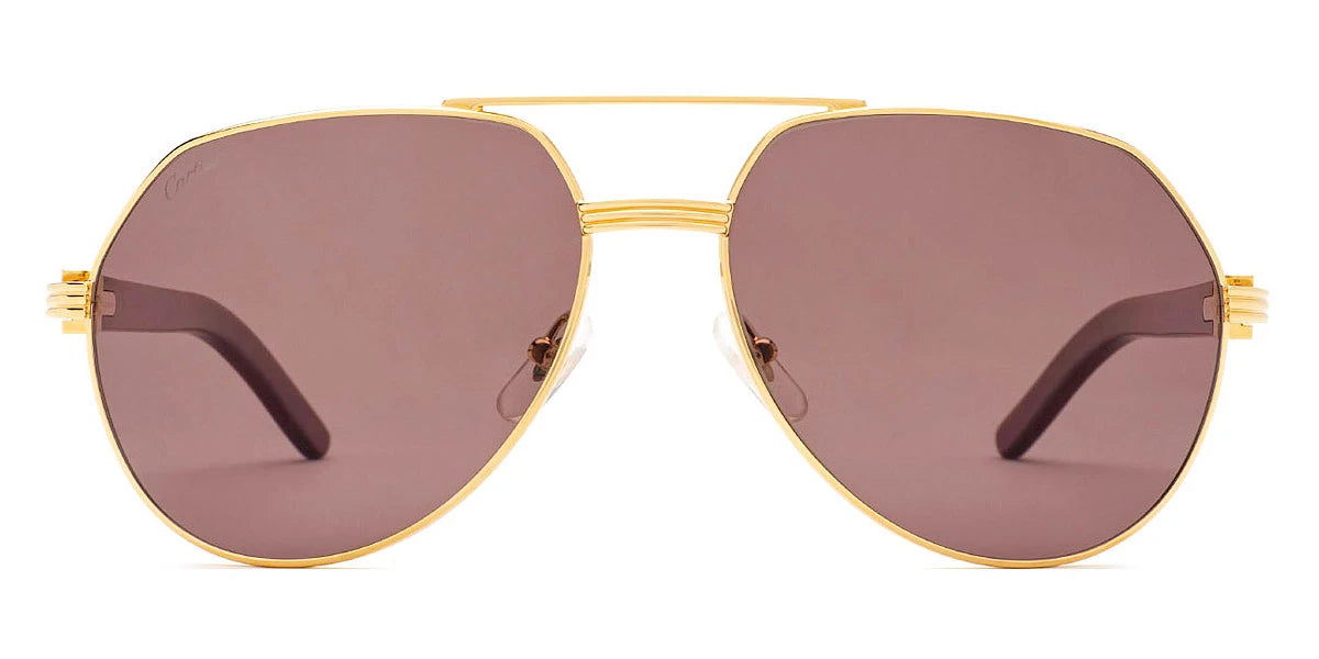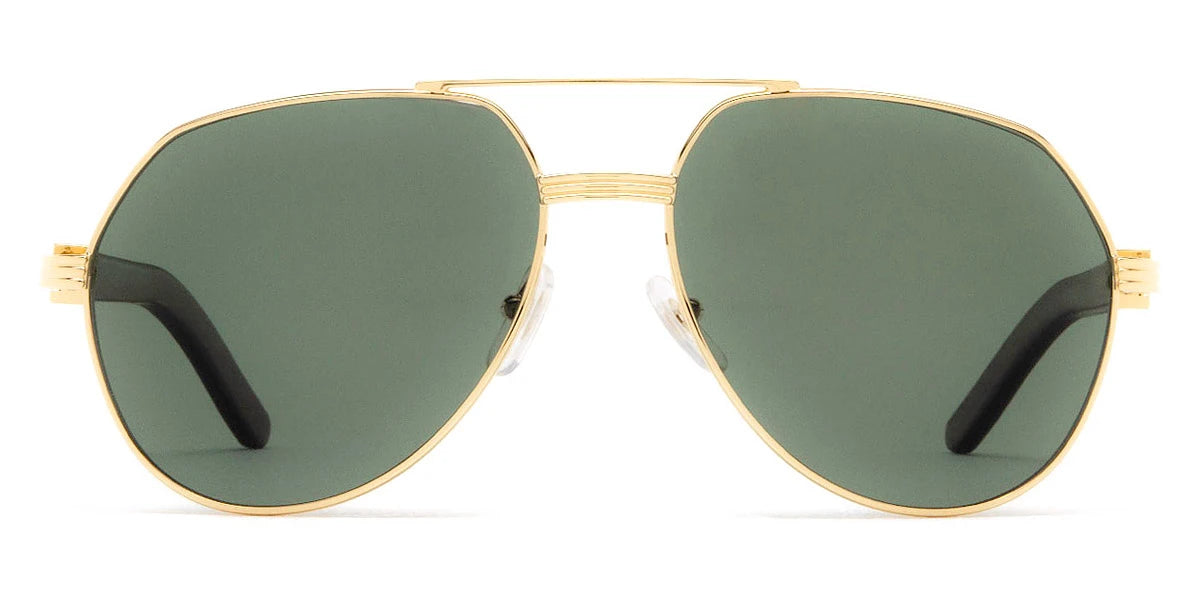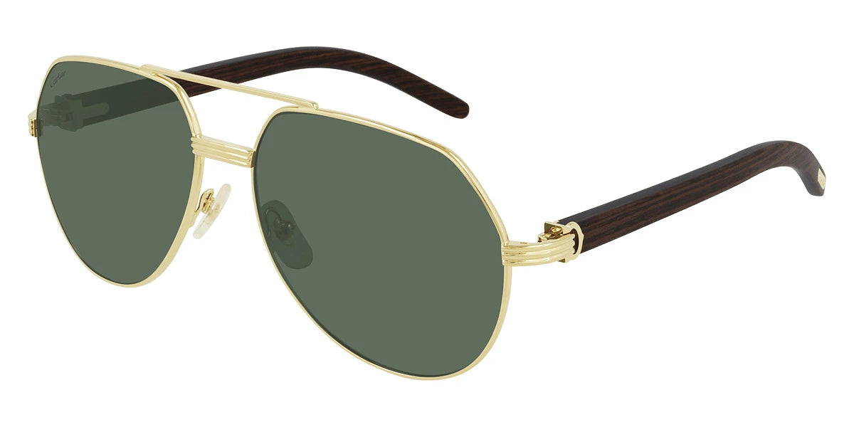 Gold/Brown (002) Sunglasses with Green AR Polarized lenses (CT0272S 002 60) by Cartier™. Size: 60-16-145, Shape: Aviator, Material: Metal and Wood.