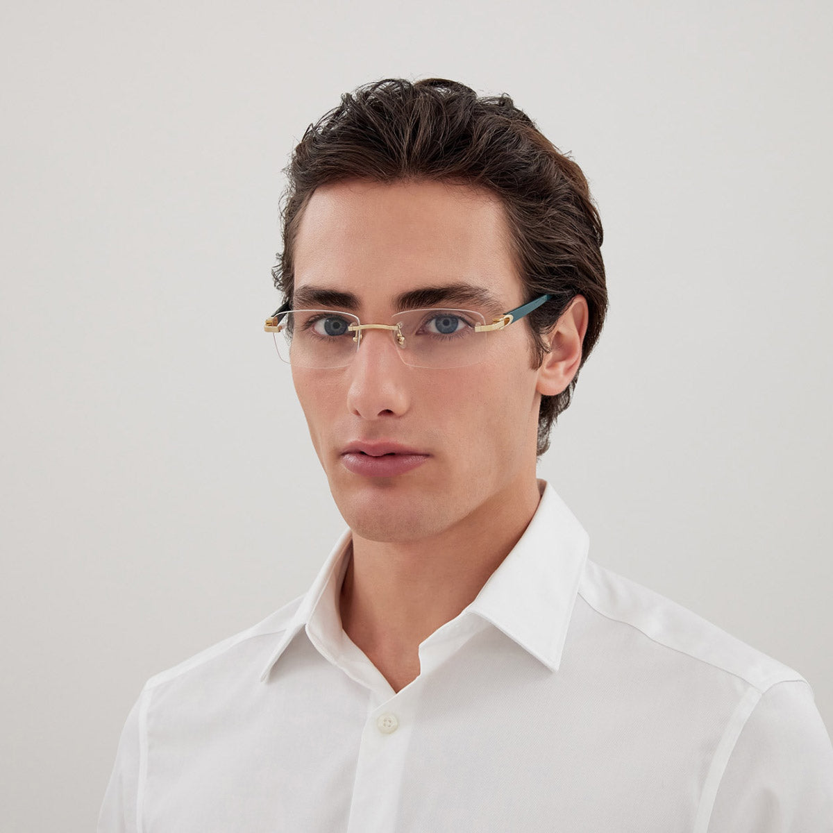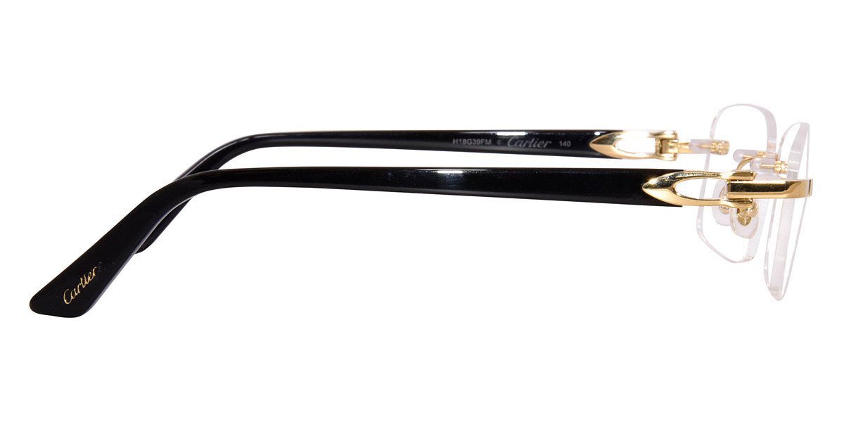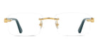 The rectangle shape desing feature a rimless metal recycled acetate frame. This model is available in two different color combinations and sizes. Cartier, a renowned luxury brand with a rich history spanning over a century, is synonymous with elegance, craftsmanship, and timeless style. While Cartier is most celebrated for its exquisite jewelry and watches, the brand's eyewear collection stands as a testament to its commitment to excellence and innovation. Its eyewear captures the essence of Cartier's aesthetic codes, combining traditional craftsmanship with modern designs to create eyewear pieces that are both stylish and functional. Each pair of eyeglasses is meticulously crafted using the finest materials and techniques, resulting in a high-quality product that is built to last. One of the defining features of Cartier eyewear is its iconic and recognizable designs. The brand often incorporates signature elements like the panther motif, the Double C logo, and the Cartier screws, which add a touch of sophistication and luxury to the frames. These distinctive details are a testament to the brand's dedication to creating eyewear that is not only fashionable but also instantly recognizable as a Cartier creation.