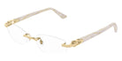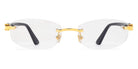 CT0318O Eyeglasses by Cartier™. The oval shape design feature a rimless metal frame. This model is available in four different color combinations and sizes. Unleash your inner connoisseur of craftsmanship with this Cartier eyeglass model. Meticulously forged from high-quality material, the frame is a work of art in itself. The intricate detailing and intricate metalwork reflect Cartier's commitment to excellence. These eyeglasses not only elevate your vision but also transform your appearance into an exquisite masterpiece.