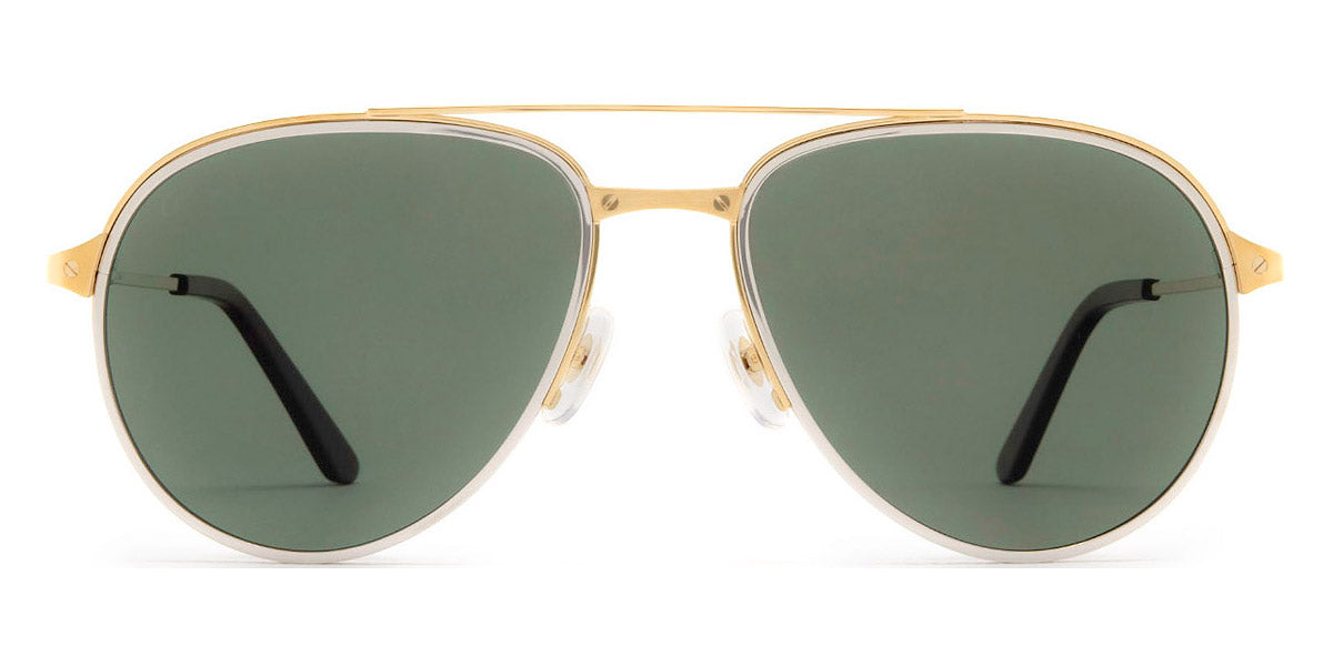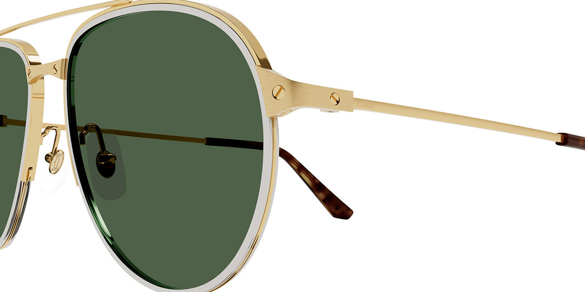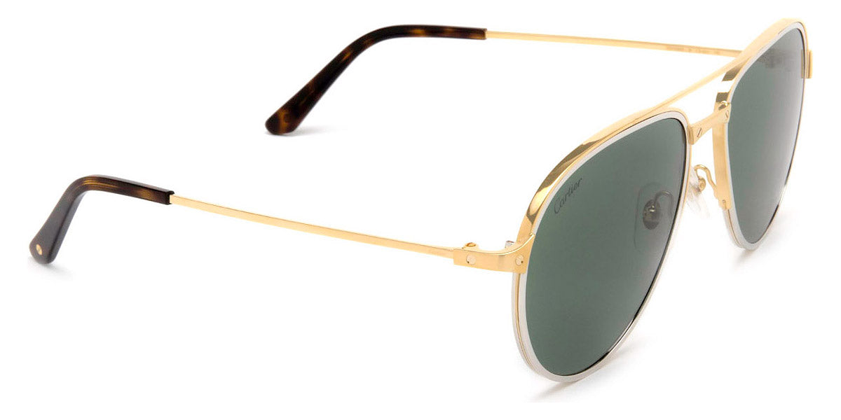Gold (006) Sunglasses with Green AR Polarized lenses (CT0325S 006 59) by Cartier™. Size: 59-19-145, Shape: Aviator, Material: Metal.