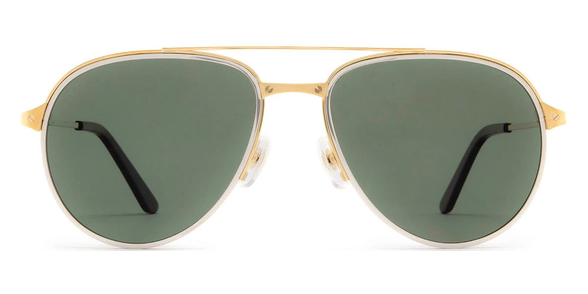 Gold (006) Sunglasses with Green AR Polarized lenses (CT0325S 006 59) by Cartier™. Size: 59-19-145, Shape: Aviator, Material: Metal.