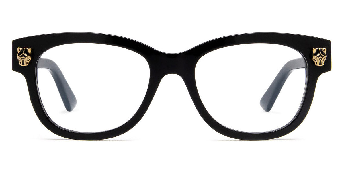 Black (001) Eyeglasses with Transparent AR lenses (CT0373O 001 51) by Cartier™. Size: 51-18-145, Shape: Cat-Eye, Material: Acetate.