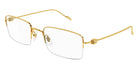 CT0380O Eyeglasses by Cartier™. The rectangle shape design feature a semi rimless gold frame. This model is available in three different color combinations and sizes. Indulge in luxury from every angle with these Cartier eyeglasses. These frames are a testament to Cartier's commitment to opulence and extravagance. With exquisite detailing and lavish materials, these eyeglasses redefine the meaning of high-end eyewear. Elevate your style with eyeglasses that are not just an accessory but a work of art.