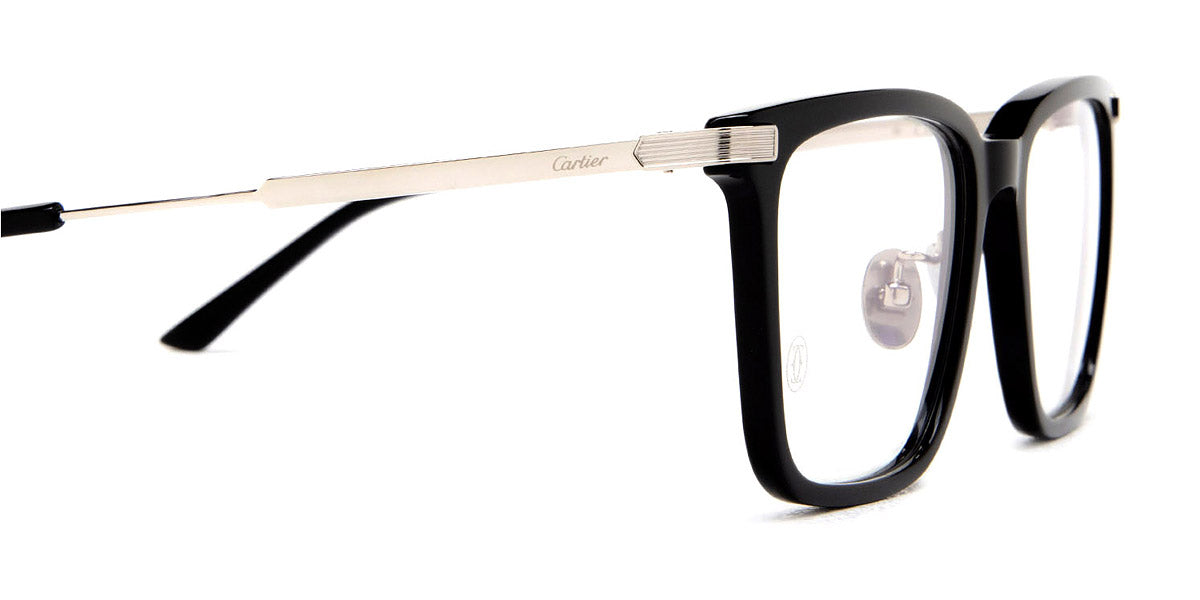 The square shape desing feature a full rim recycled acetate titanium frame. This model is available in three different color combinations and sizes. Cartier, a renowned luxury brand with a rich history spanning over a century, is synonymous with elegance, craftsmanship, and timeless style. While Cartier is most celebrated for its exquisite jewelry and watches, the brand's eyewear collection stands as a testament to its commitment to excellence and innovation. Its eyewear captures the essence of Cartier's aesthetic codes, combining traditional craftsmanship with modern designs to create eyewear pieces that are both stylish and functional. Each pair of eyeglasses is meticulously crafted using the finest materials and techniques, resulting in a high-quality product that is built to last. One of the defining features of Cartier eyewear is its iconic and recognizable designs. The brand often incorporates signature elements like the panther motif, the Double C logo, and the Cartier screws, which add a touch of sophistication and luxury to the frames. These distinctive details are a testament to the brand's dedication to creating eyewear that is not only fashionable but also instantly recognizable as a Cartier creation.
