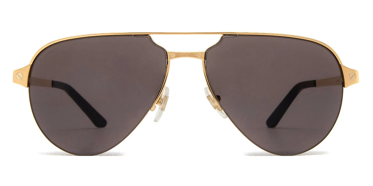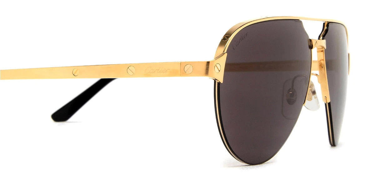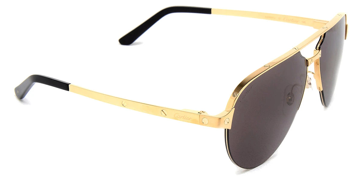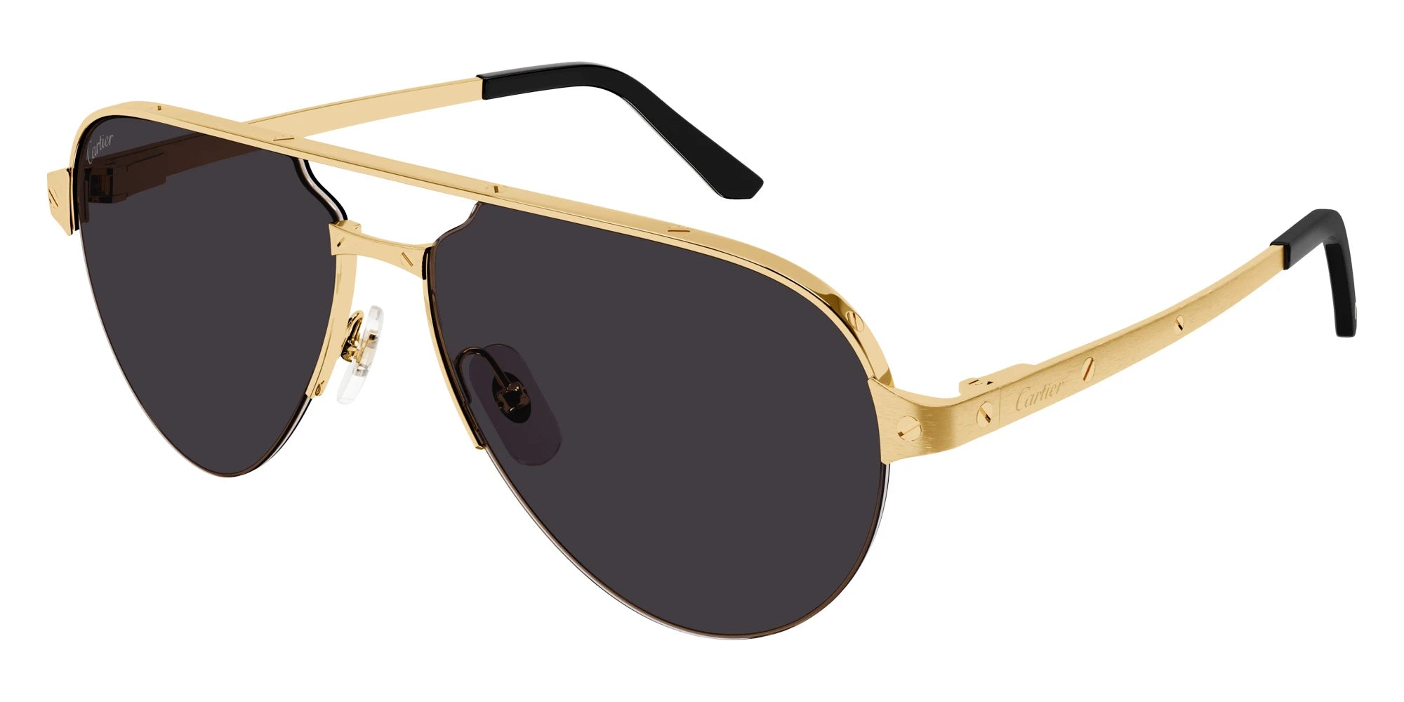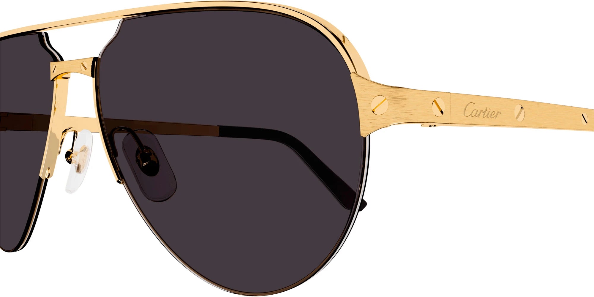 Gold (001) Sunglasses with Gray AR lenses (CT0386S 001 60) by Cartier™. Size: 60-15-140, Shape: Aviator, Material: Metal.