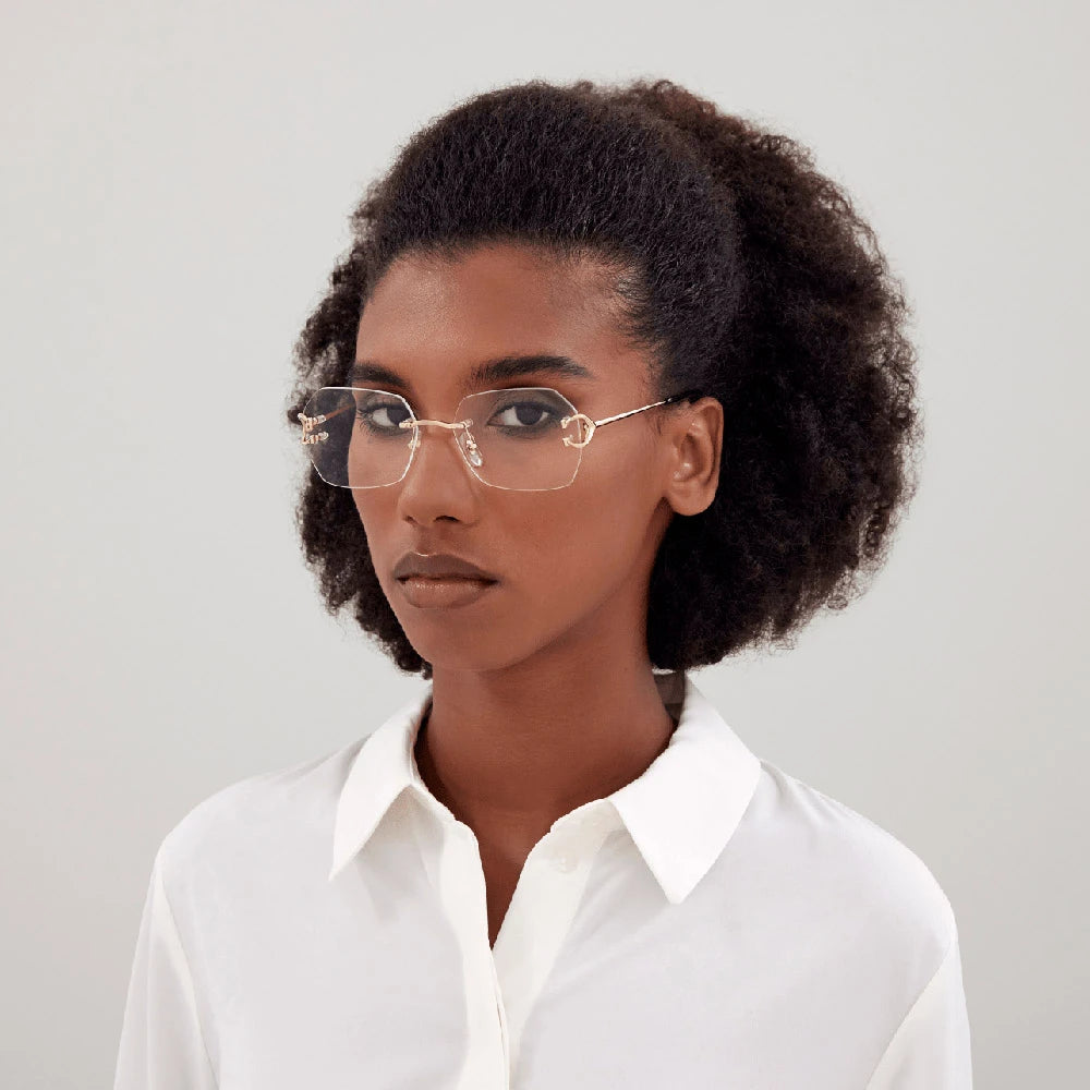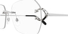 CT0416O Eyeglasses by Cartier™. The geometric shape design feature a rimless metal frame. This model is available in two different color combinations and sizes. Elevate your eyewear collection with this Cartier model, an embodiment of refined sophistication. The frames feature a blend of materials that harmonize effortlessly, creating a visually striking yet comfortable eyeglass design. Impeccable attention to detail and precision craftsmanship define this model, making it an essential accessory for those who appreciate both style and substance.