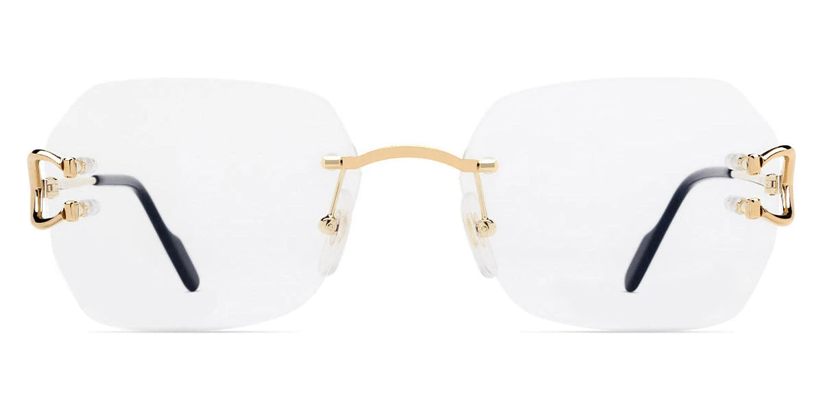 Gold (001) Eyeglasses with Transparent AR lenses (CT0416O 001 57) by Cartier™. Size: 57-17-145, Shape: Geometric, Material: Metal.