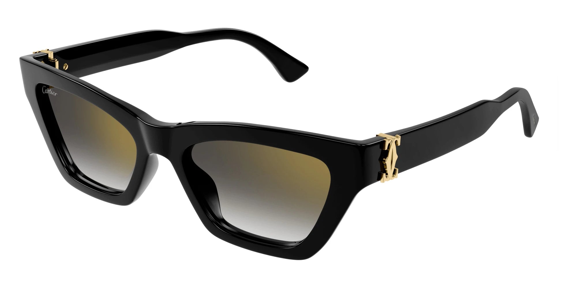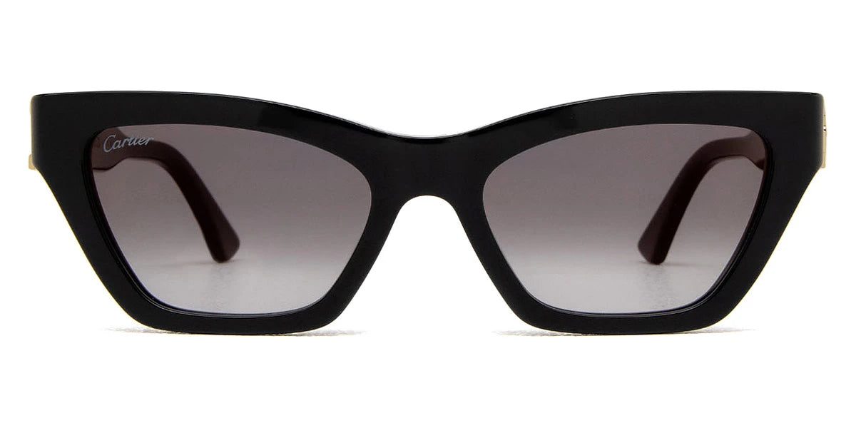 CT0437S Sunglasses by Cartier™. The cat-eye shape design feature a full rim recycled acetate frame. This model is available in three different color combinations and sizes. Cartier, a renowned luxury brand with a rich history spanning over a century, is synonymous with elegance, craftsmanship, and timeless style. While Cartier is most celebrated for its exquisite jewelry and watches, the brand's eyewear collection stands as a testament to its commitment to excellence and innovation. Its eyewear captures the essence of Cartier's aesthetic codes, combining traditional craftsmanship with modern designs to create eyewear pieces that are both stylish and functional. Each pair of sunglasses is meticulously crafted using the finest materials and techniques, resulting in a high-quality product that is built to last. One of the defining features of Cartier eyewear is its iconic and recognizable designs. The brand often incorporates signature elements like the panther motif, the Double C logo, and the Cartier screws, which add a touch of sophistication and luxury to the frames. These distinctive details are a testament to the brand's dedication to creating eyewear that is not only fashionable but also instantly recognizable as a Cartier creation.